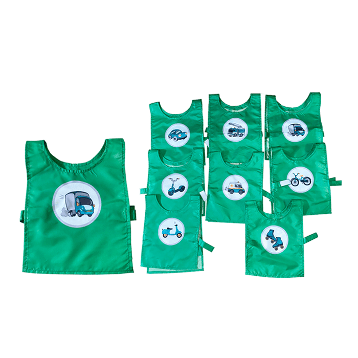 3. Набор ролевых жилетов: водитель легковой машины, самокат, водитель грузовой машины, водитель скорой помощи, велосипедист, водитель пожарной машины, мотоциклист, роллер