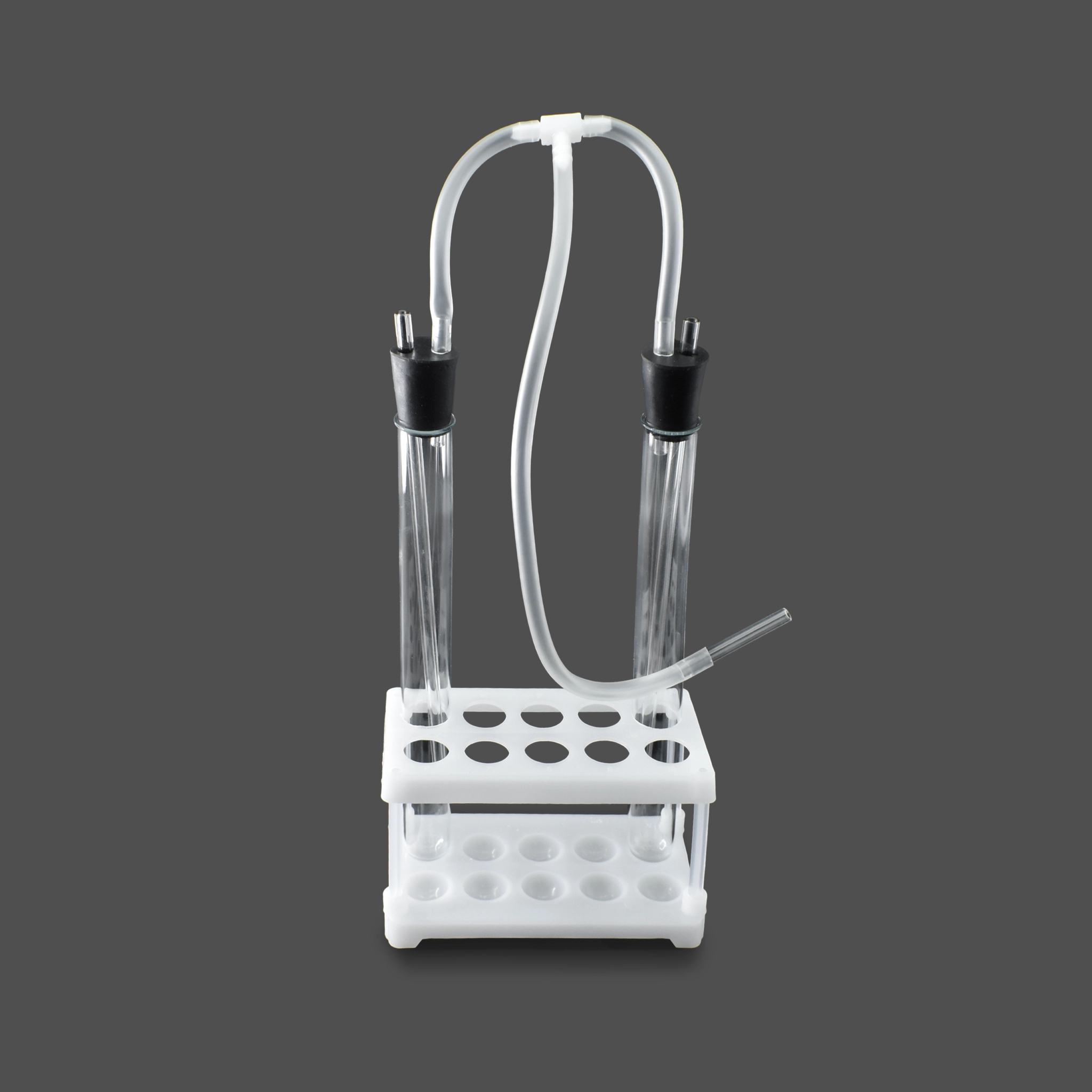 Прибор представляет собой устойчивую конструкцию на пластиковом основании-штативе. Система газоотводных трубок (стеклянных и гибких силиконовых) соединена через тройник, что обеспечивает гигиеничность и удобство использования. Штатив имеет 10 посадочных мест, что позволяет использовать его и для других пробирочных работ.Комплектность