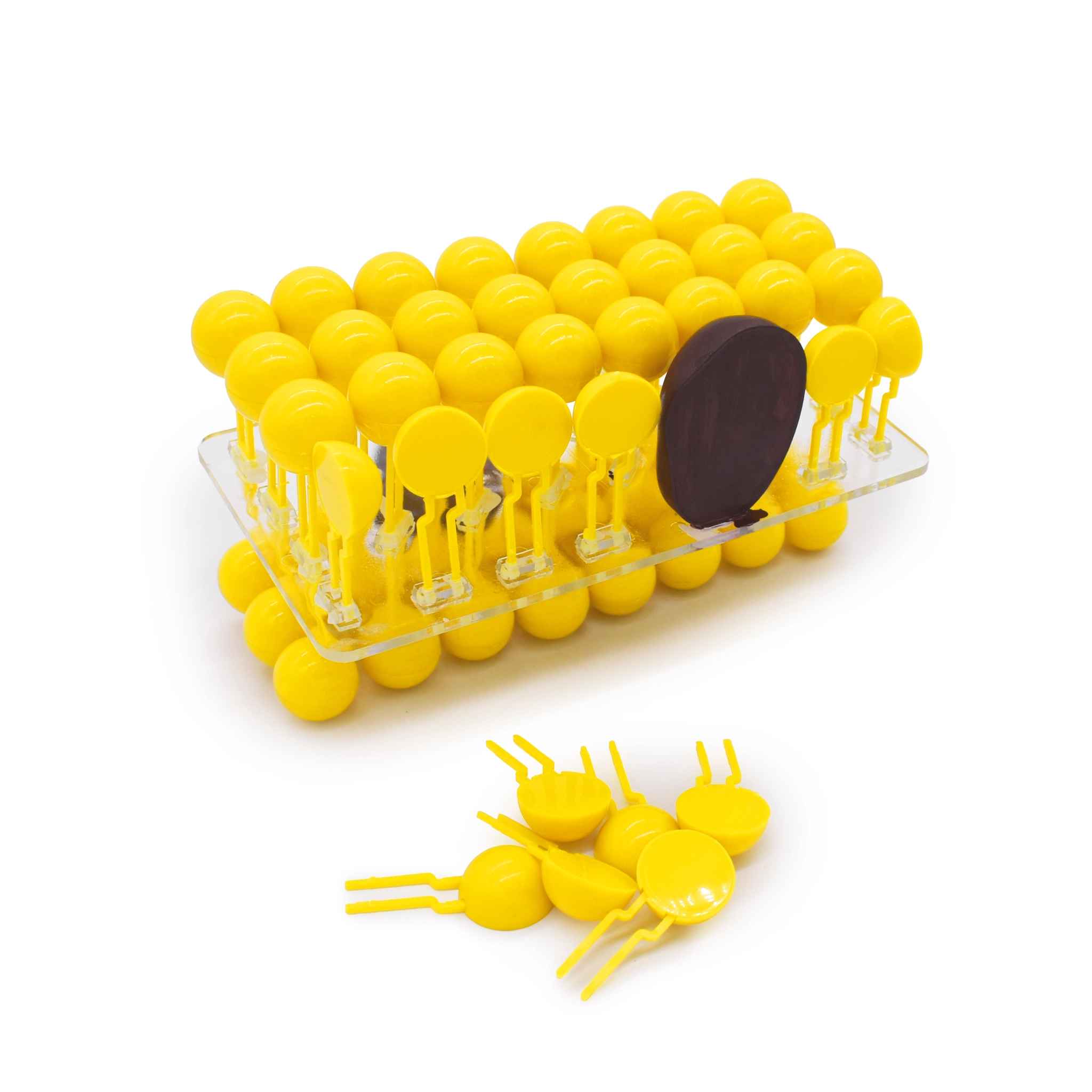 - Интерактивный формат: Модель является полностью разборной. Элементы белков и липидов фиксируются в прозрачном основании, что позволяет имитировать процесс сборки мембраны и объяснять её полупроницаемость.