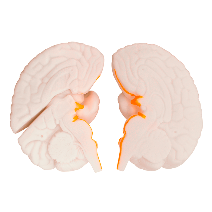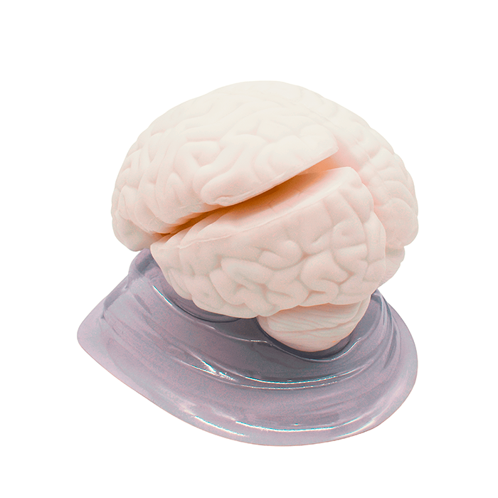 Данное пособие представляет собой детализированную копию мозга с сагиттальным разрезом. Благодаря разборной конструкции и высокой детализации, ученики могут наглядно изучить как внешнее, так и внутреннее строение органа. Модель выполнена из прочного белого пластика, устойчивого к механическим повреждениям, и установлена на прозрачную подставку для удобства демонстрации.