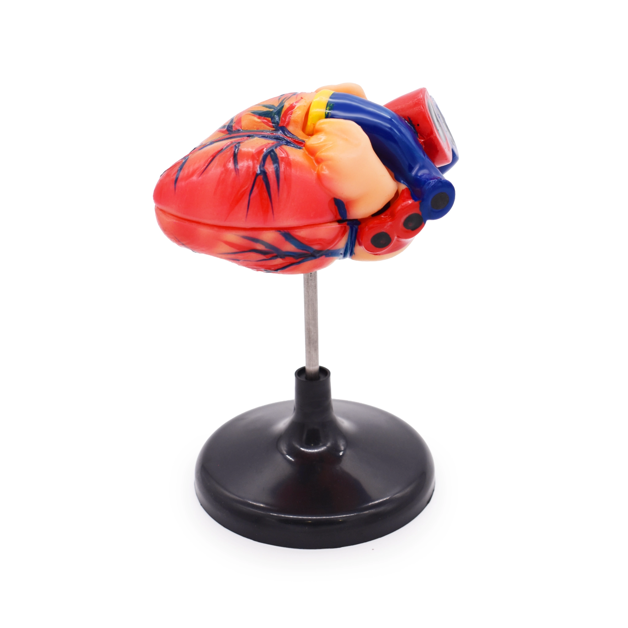 Предназначена для использования в общеобразовательных учреждениях на уроках биологии и анатомии в качестве наглядного пособия к разделу при изучении раздела «Человек и его здоровье» по теме «Кровообращение. Строение сердца». Модель разборная, смонтирована на подставке, раскрашена в естественные цвета.