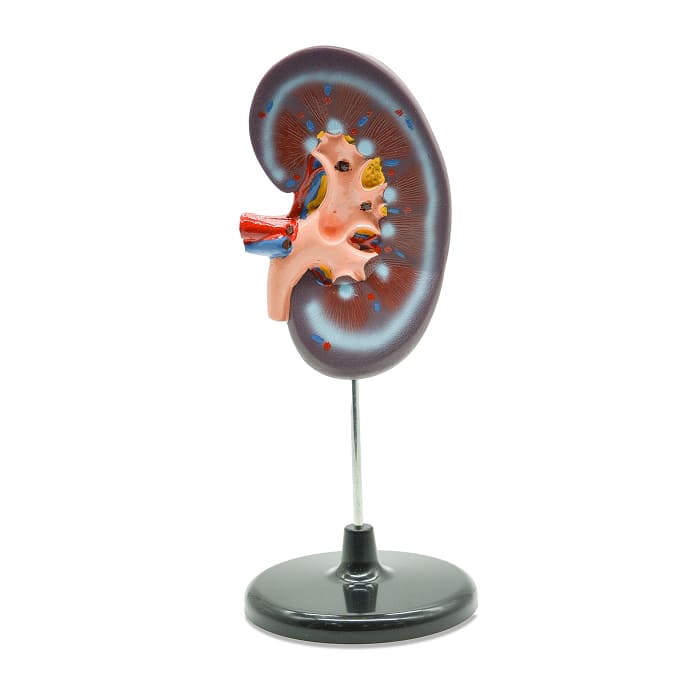 Модель отображает особенности внешнего и внутреннего строение почки человека, что позволяет рассмотреть следующие детали: