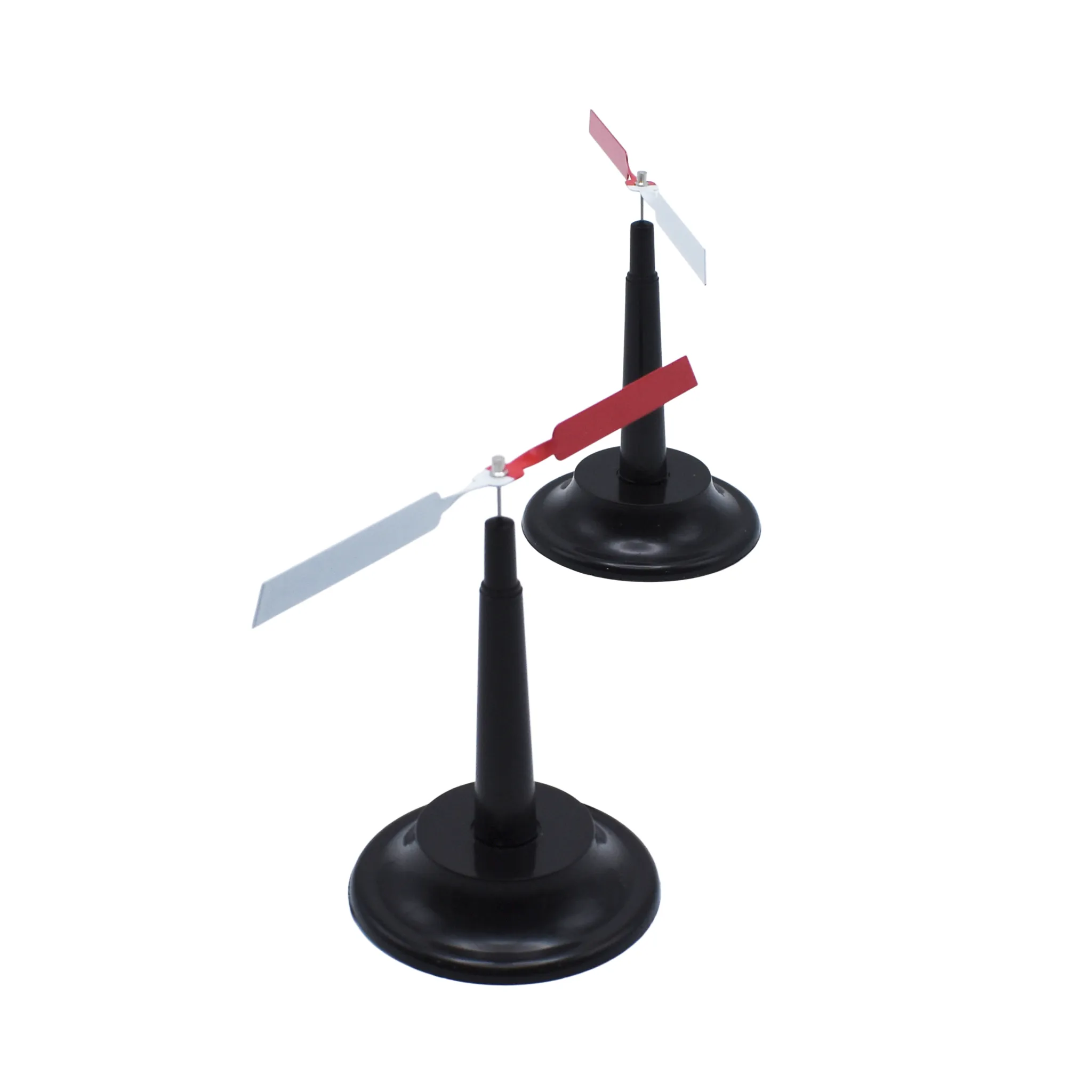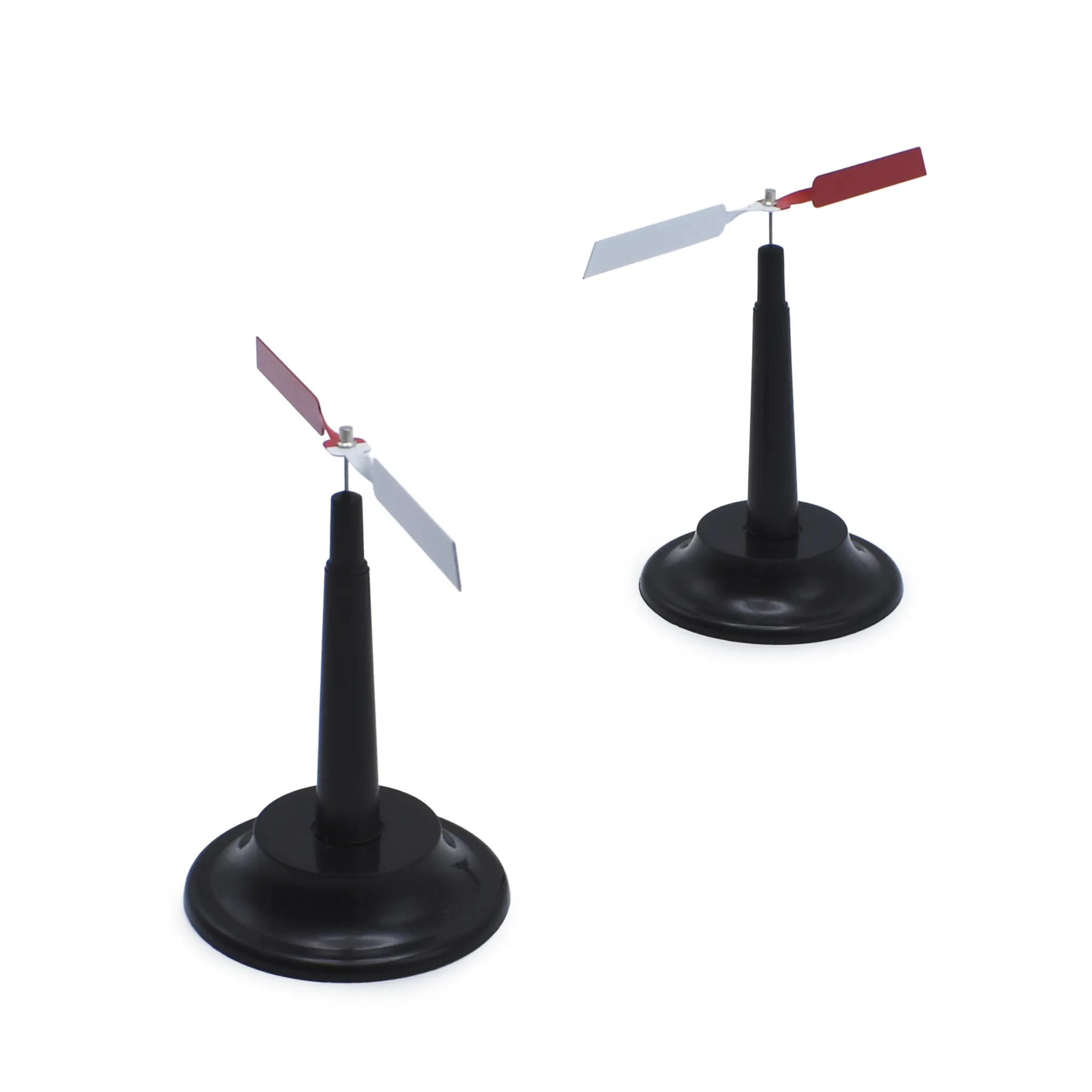 - Минимальное трение: в центральную часть стальной стрелки запрессовано латунное гнездо, которое обеспечивает свободное и плавное вращение на острой игле штатива, гарантируя высокую чувствительность к магнитным полям.