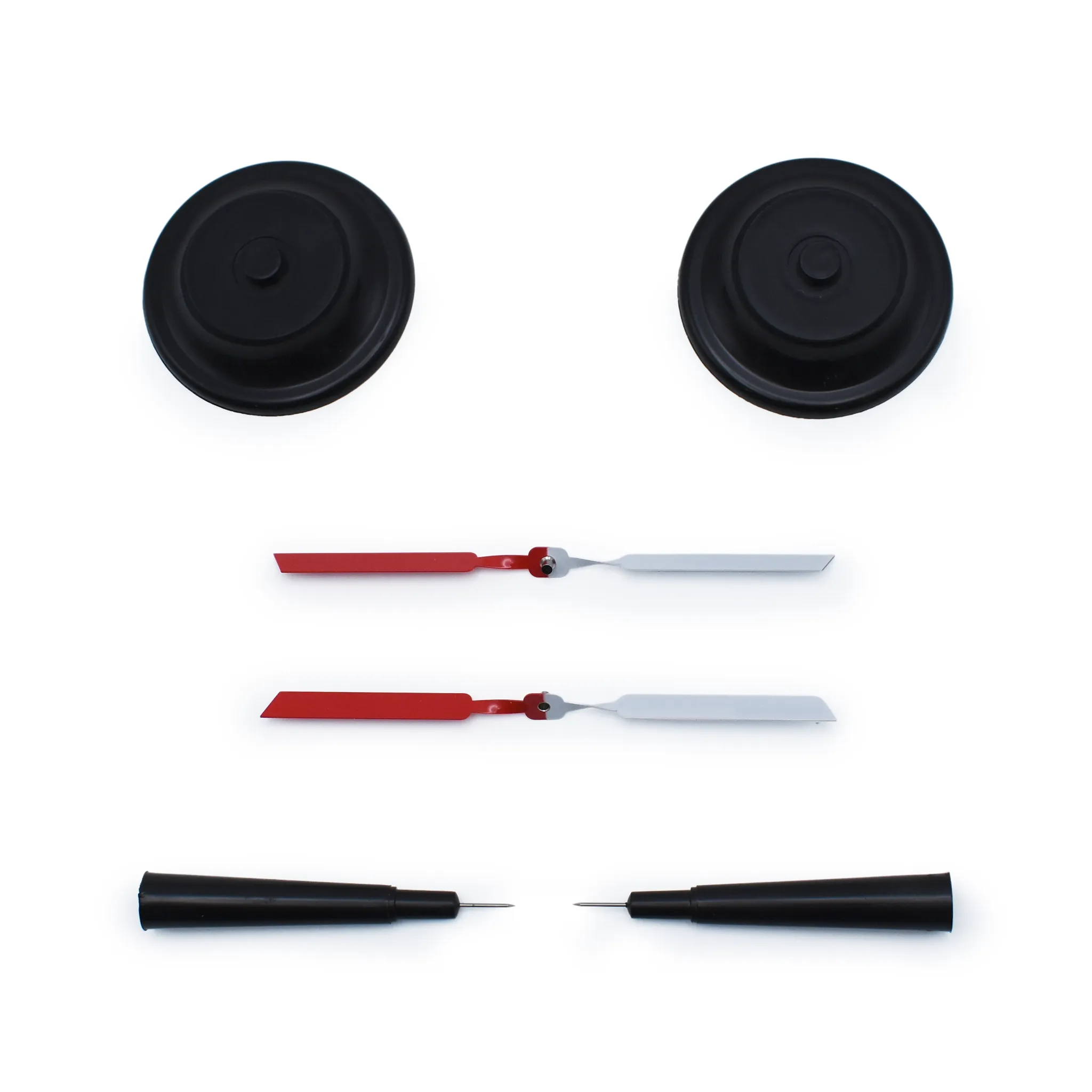 Каждая стрелка представляет собой намагниченную полоску из стали с запрессованным латунным гнездом для установки на иглу пластмассовой стойки.