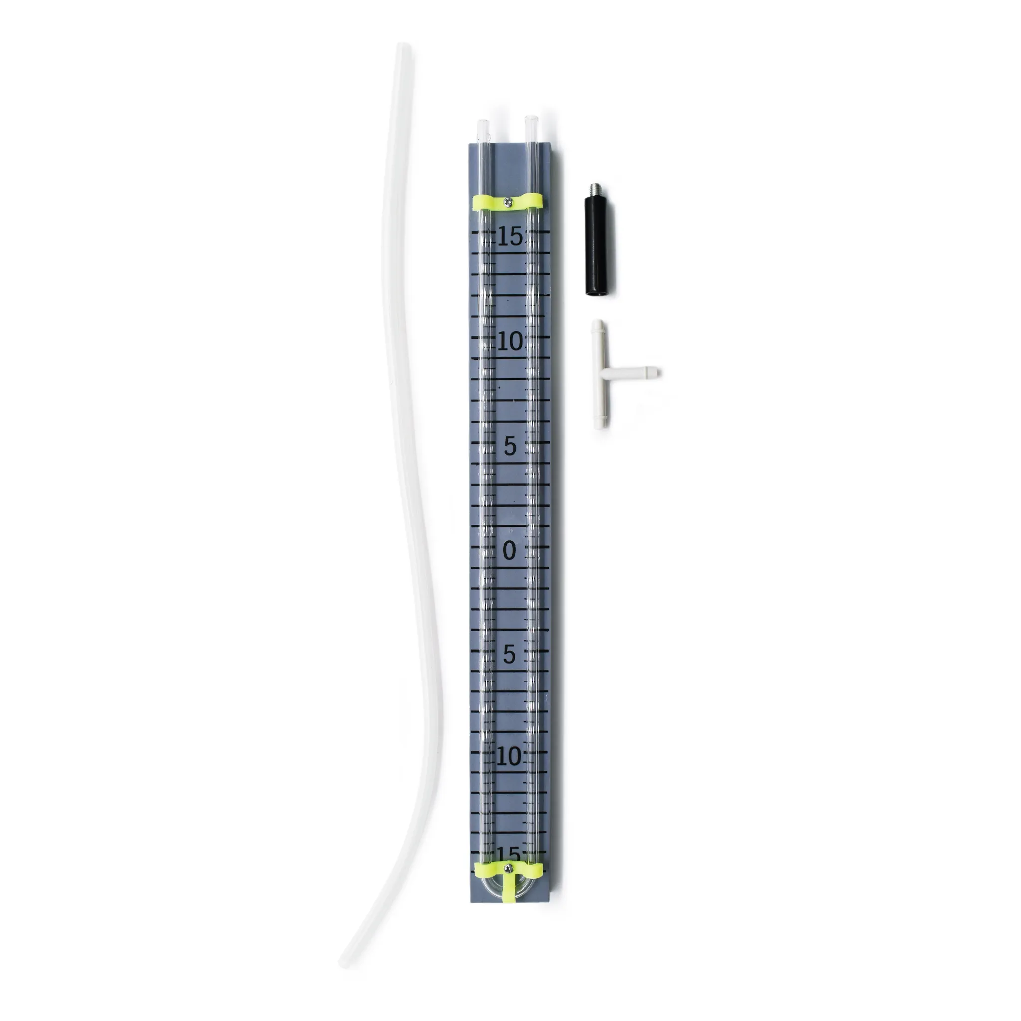 Представляет собой U — образную стеклянную трубку (длина 465 мм), закрепленную на планшете (ДхШхВ) 365х40х10 мм со шкалой с делениями не более чем через 5 мм и нулем посередине. Винт длиной длина 45 мм.