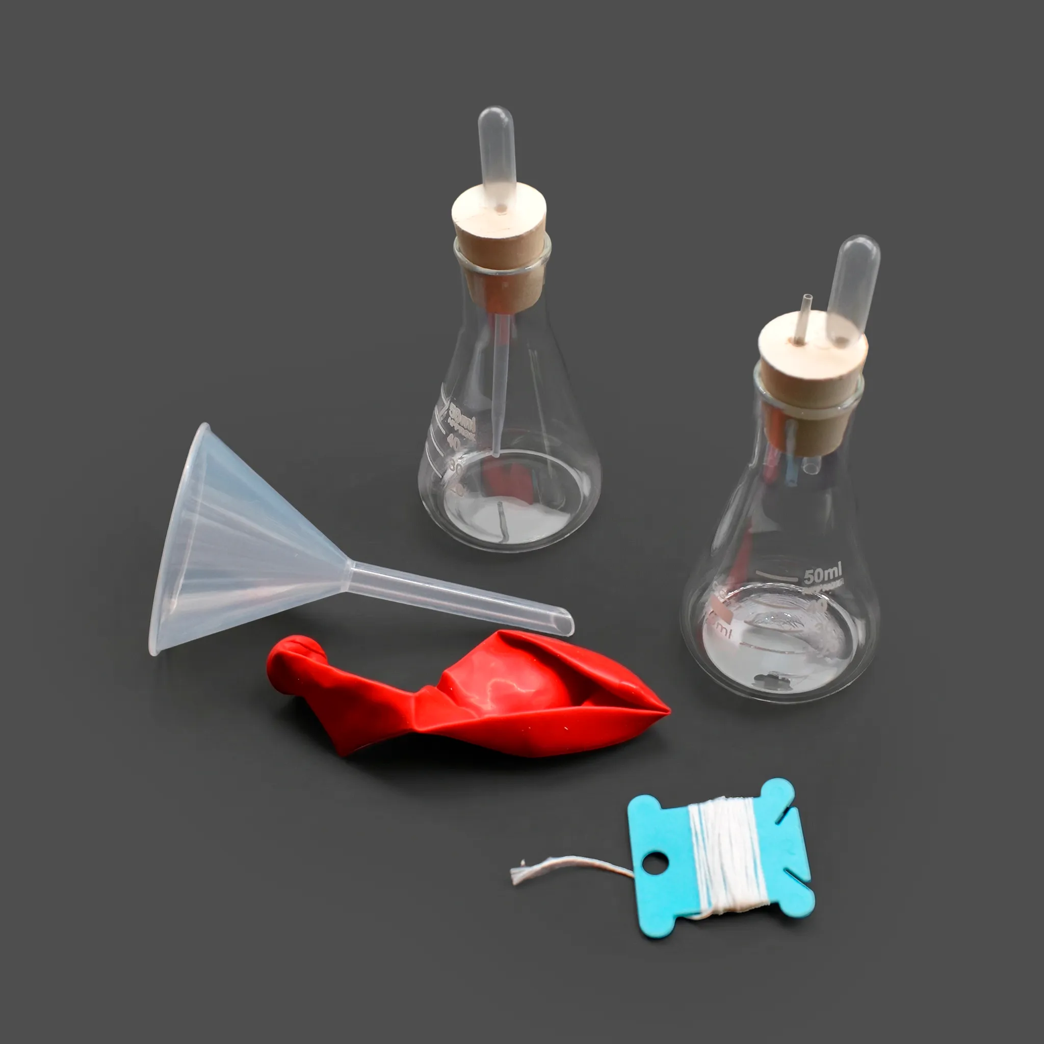 1. Конические колбы с градуировкой (2 шт.) — служат ёмкостями для исходных реагентов. Позволяют точно отмерять объём жидкостей.