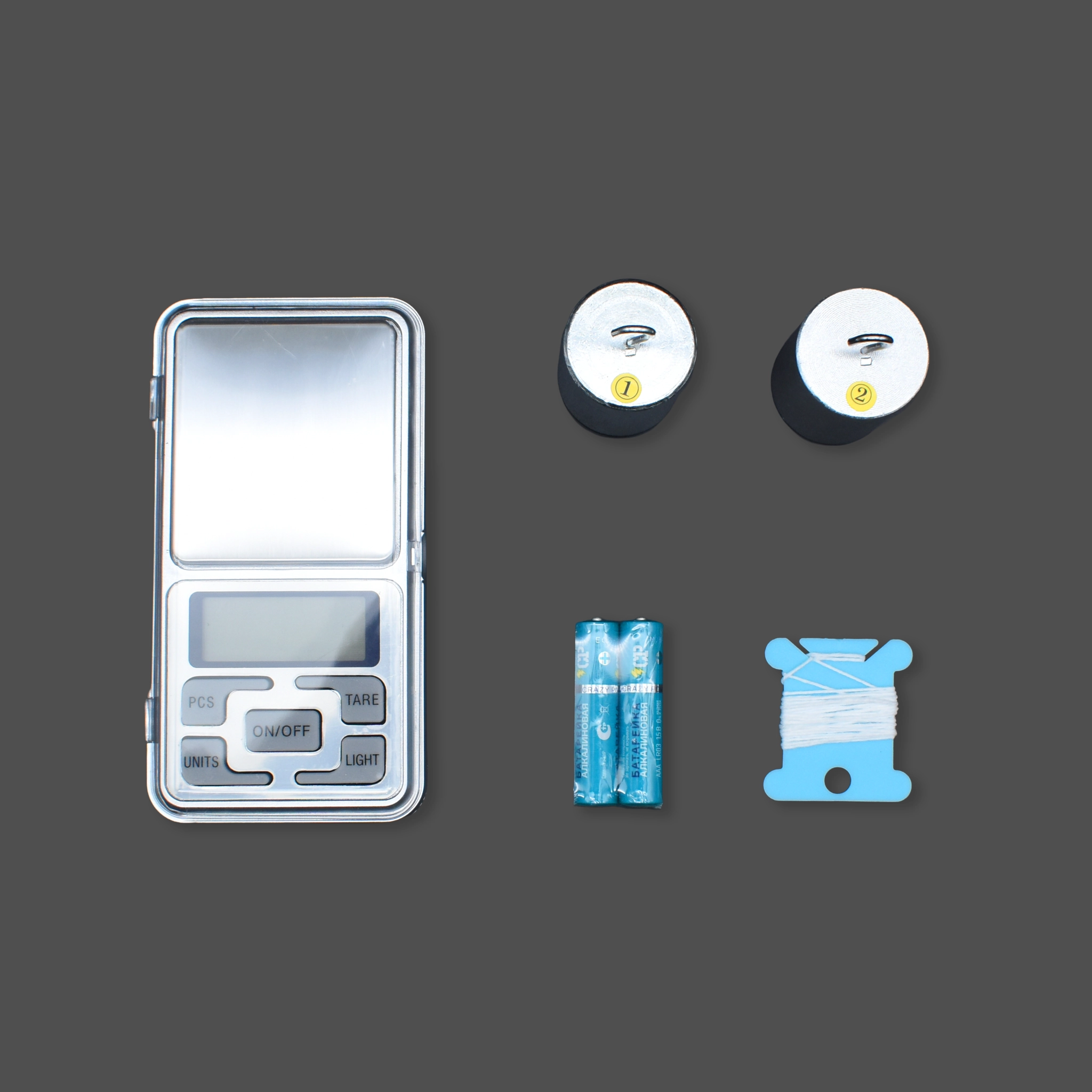 6. Нитяной маятник с грузом и пусковым магнитом (длина нити 50 см, 4 × (100±2) г) — 1 шт.