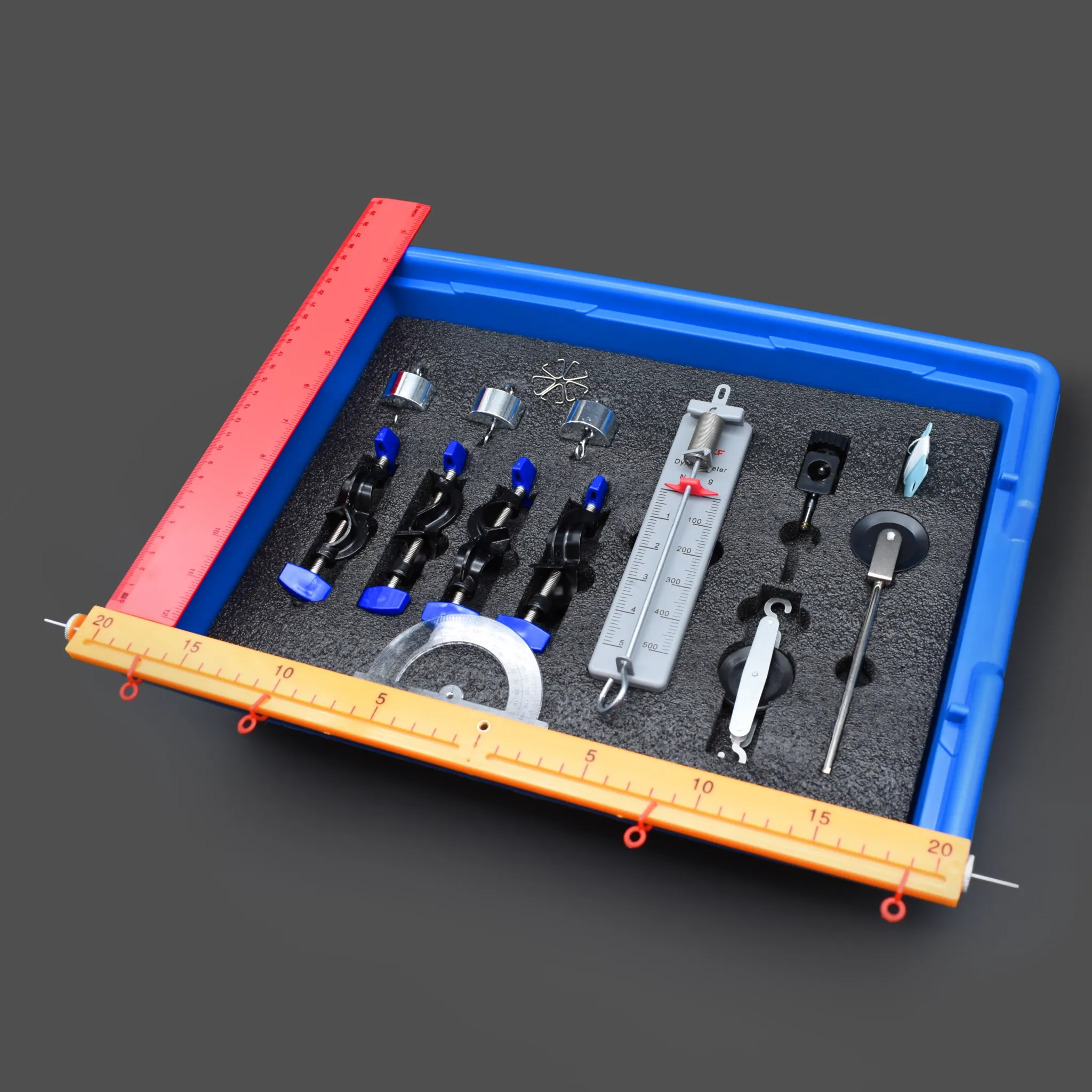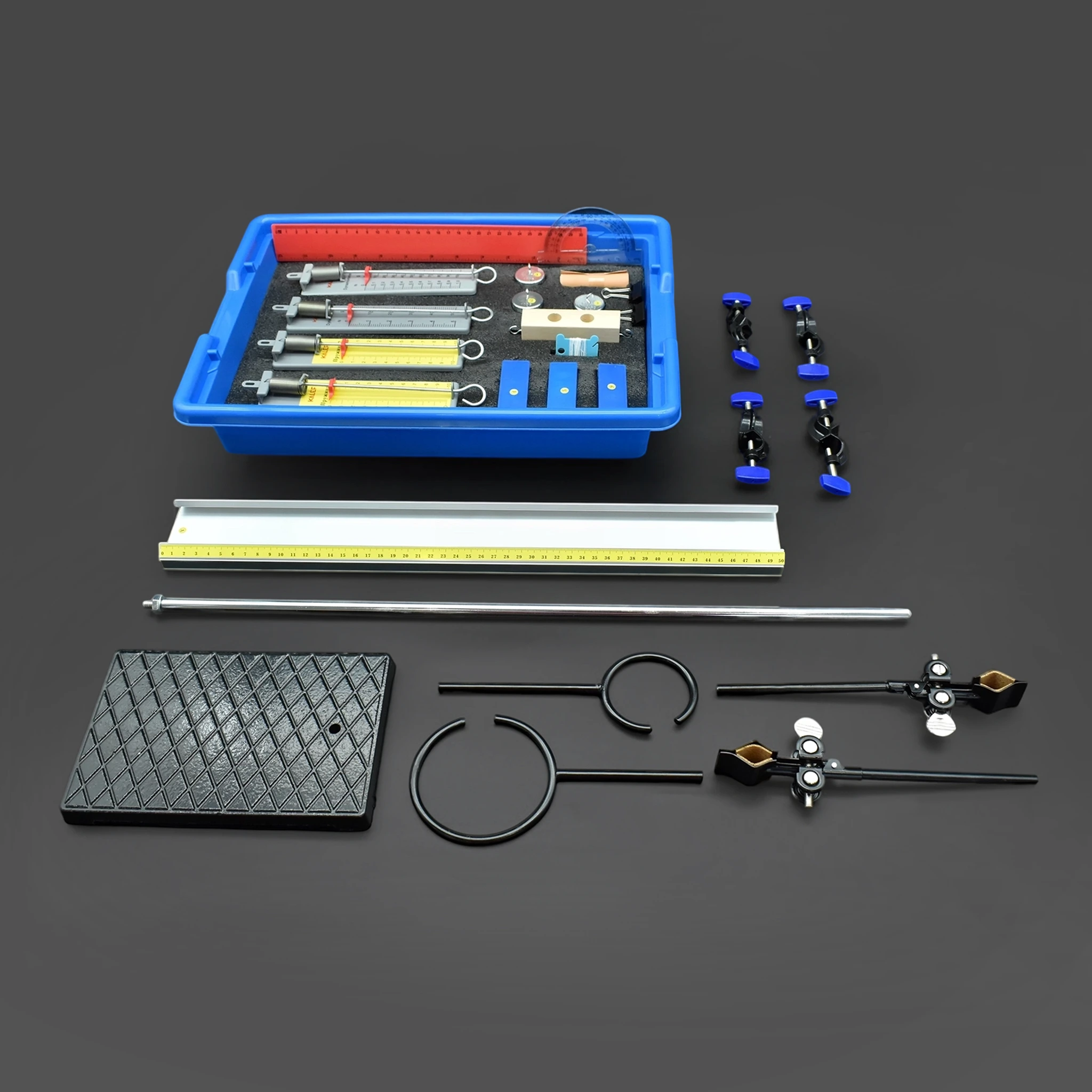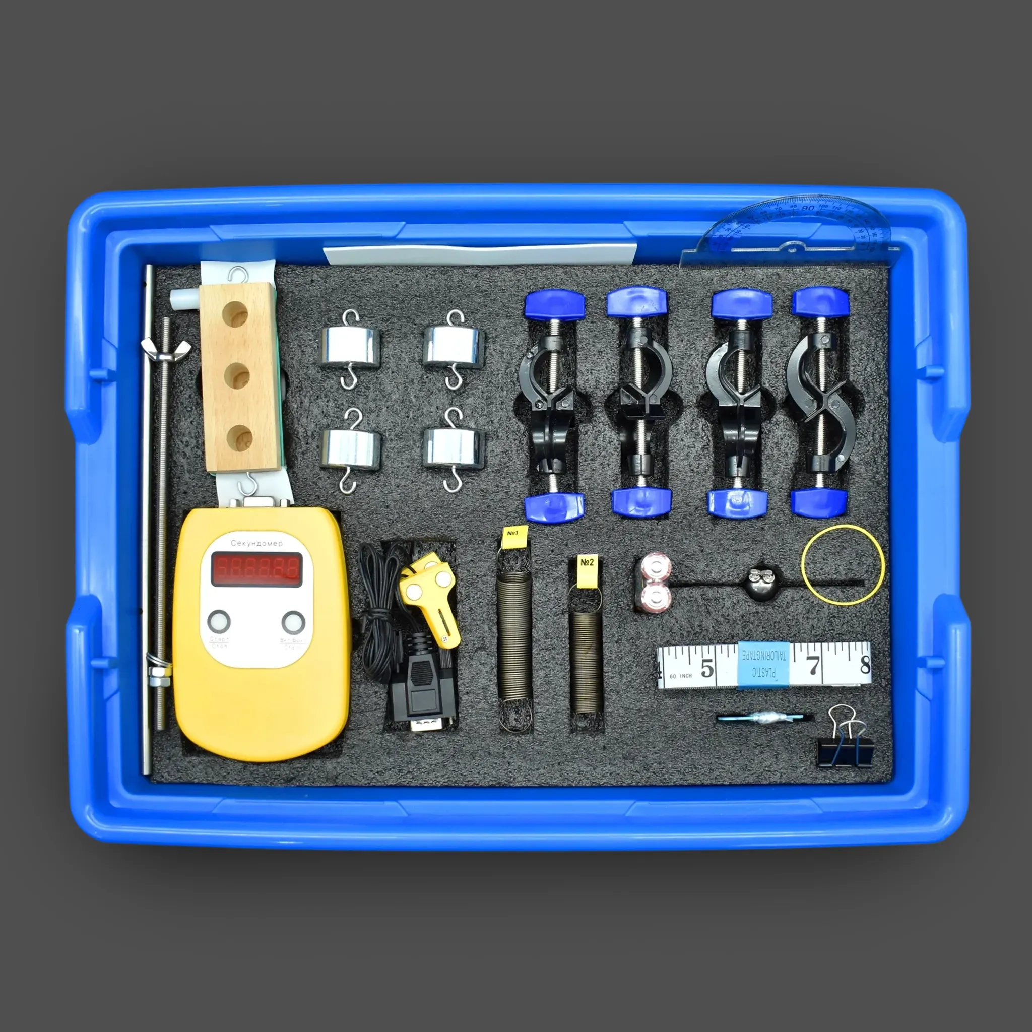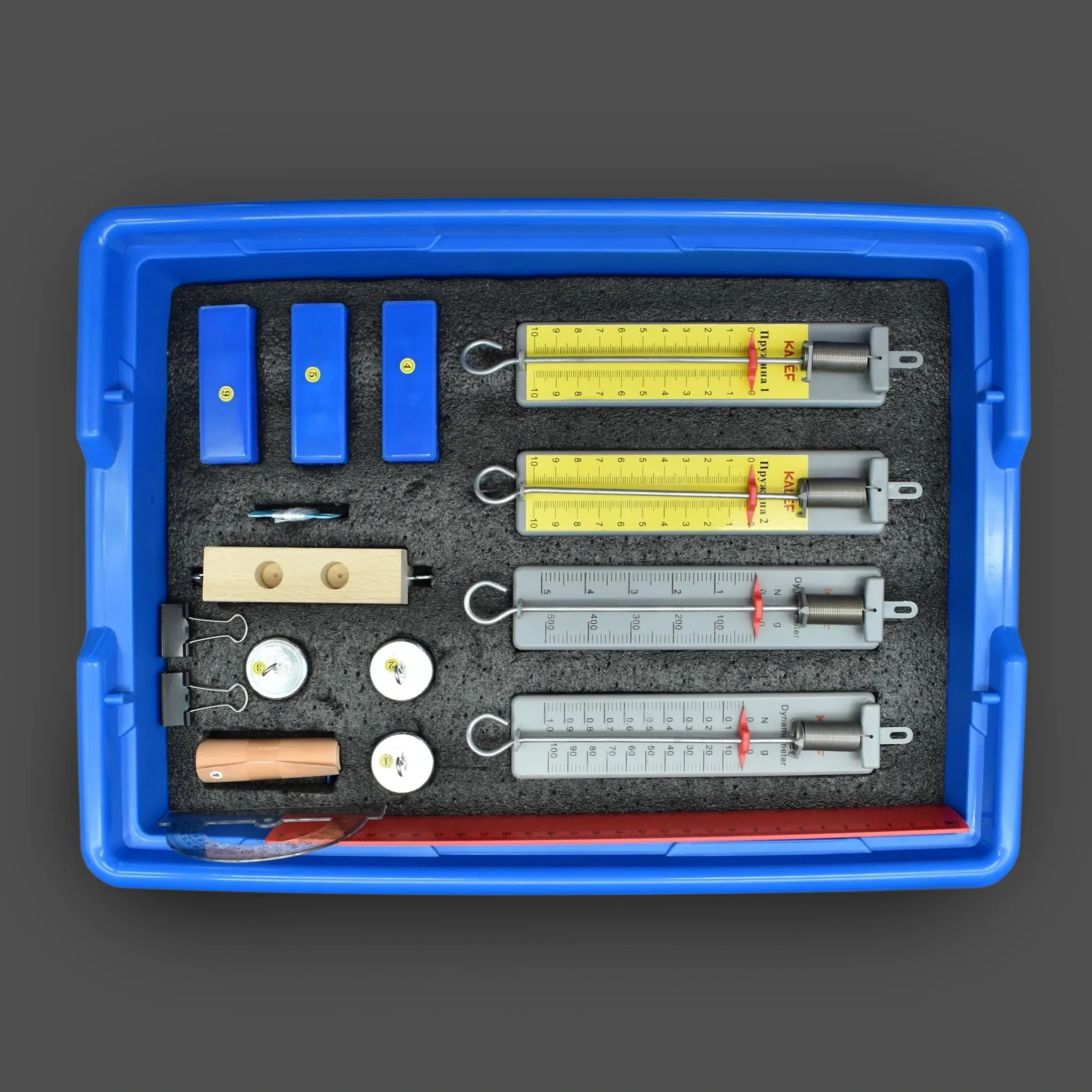 Набор используется для исследования силы трения скольжения, жесткости пружин и работы сил упругости.Параметры упругих элементов