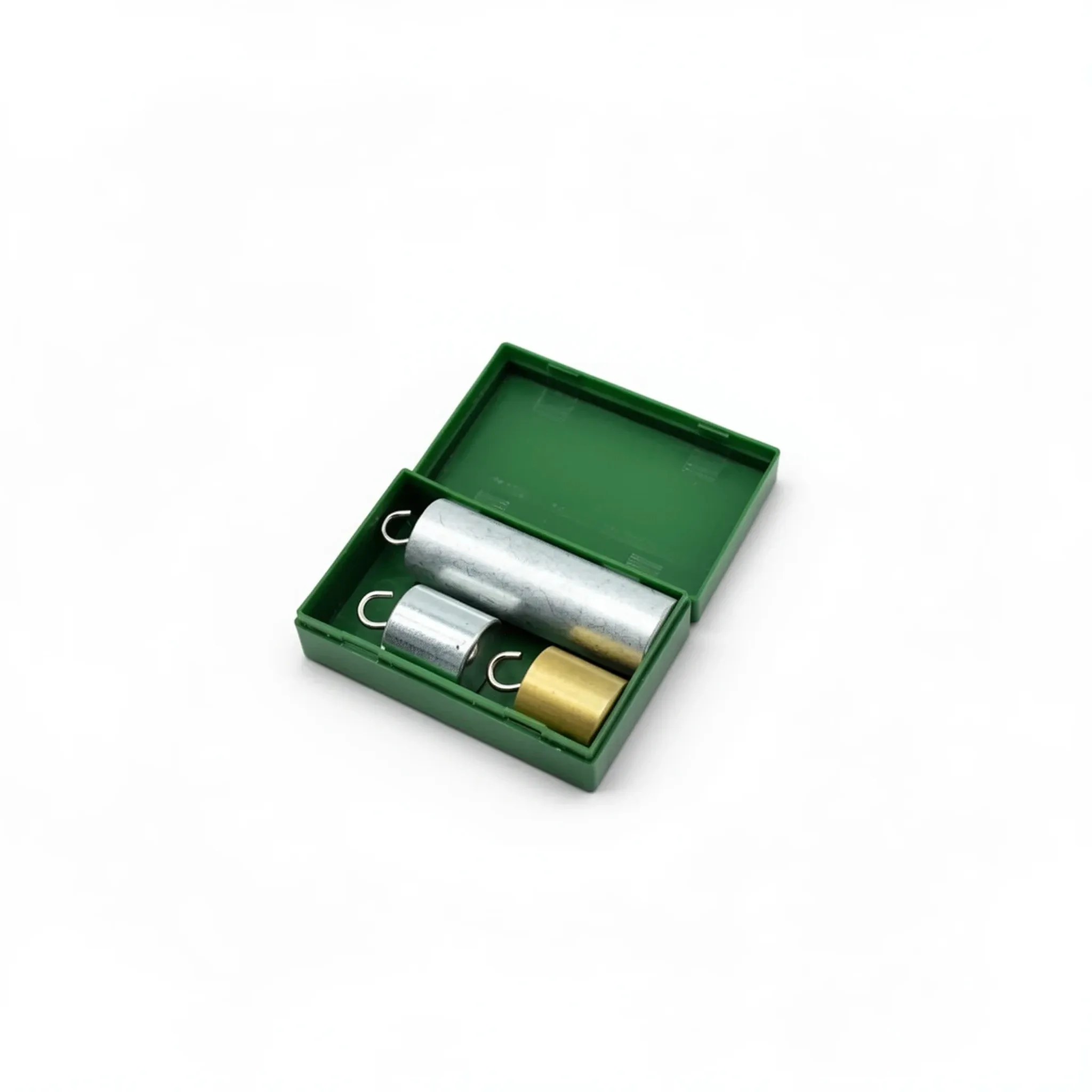 Материалы цилиндров изготовлены из латуни, железа, алюминия и размещены в пластмассовом контейнере.