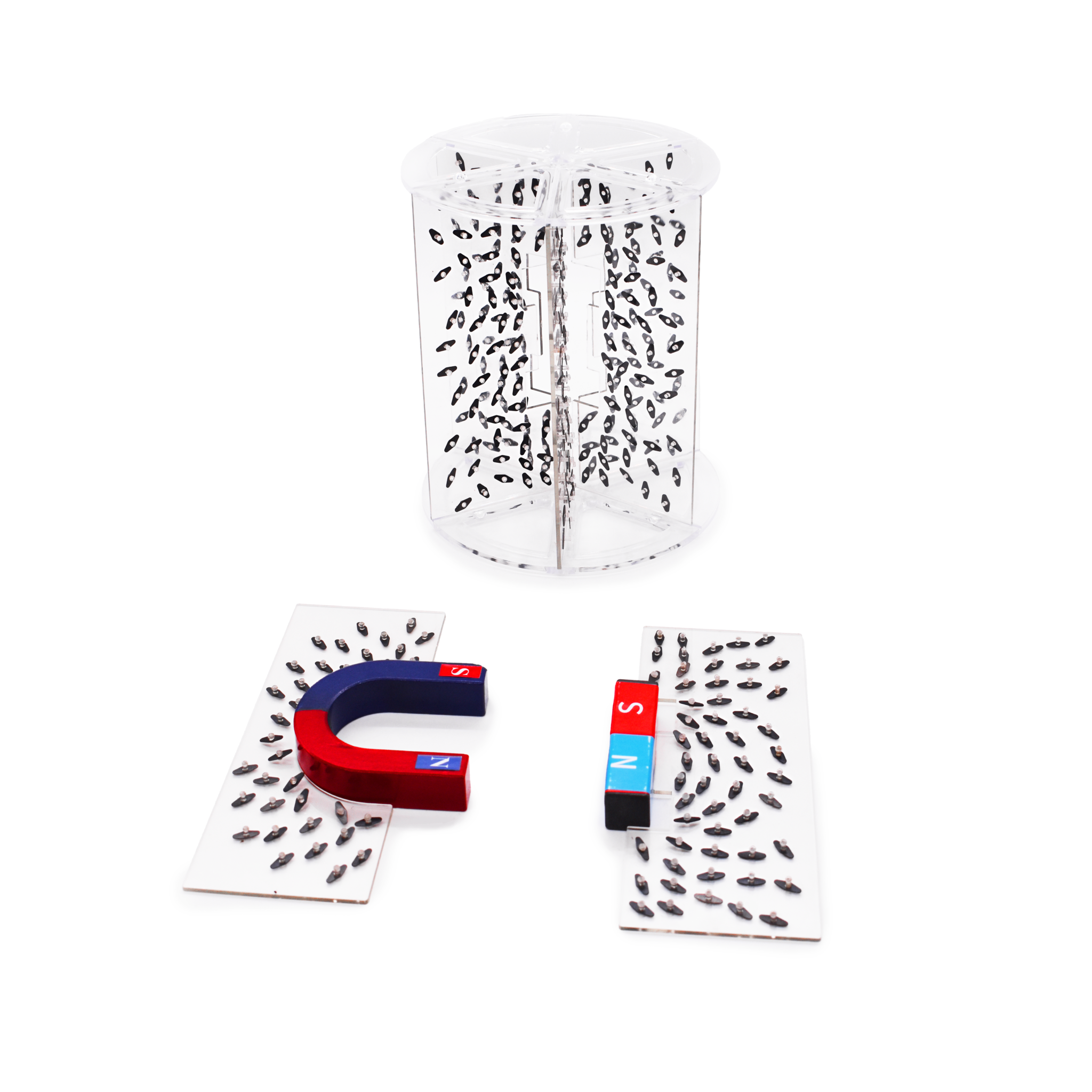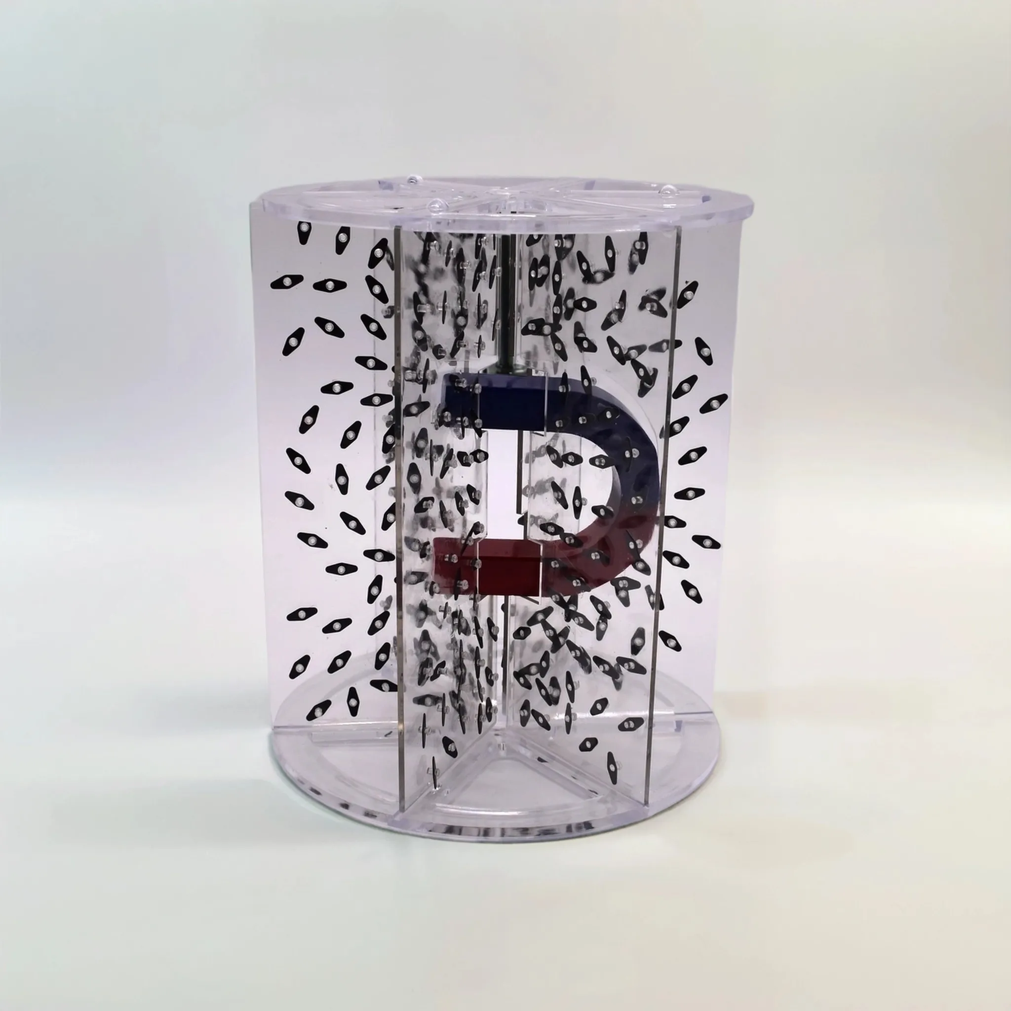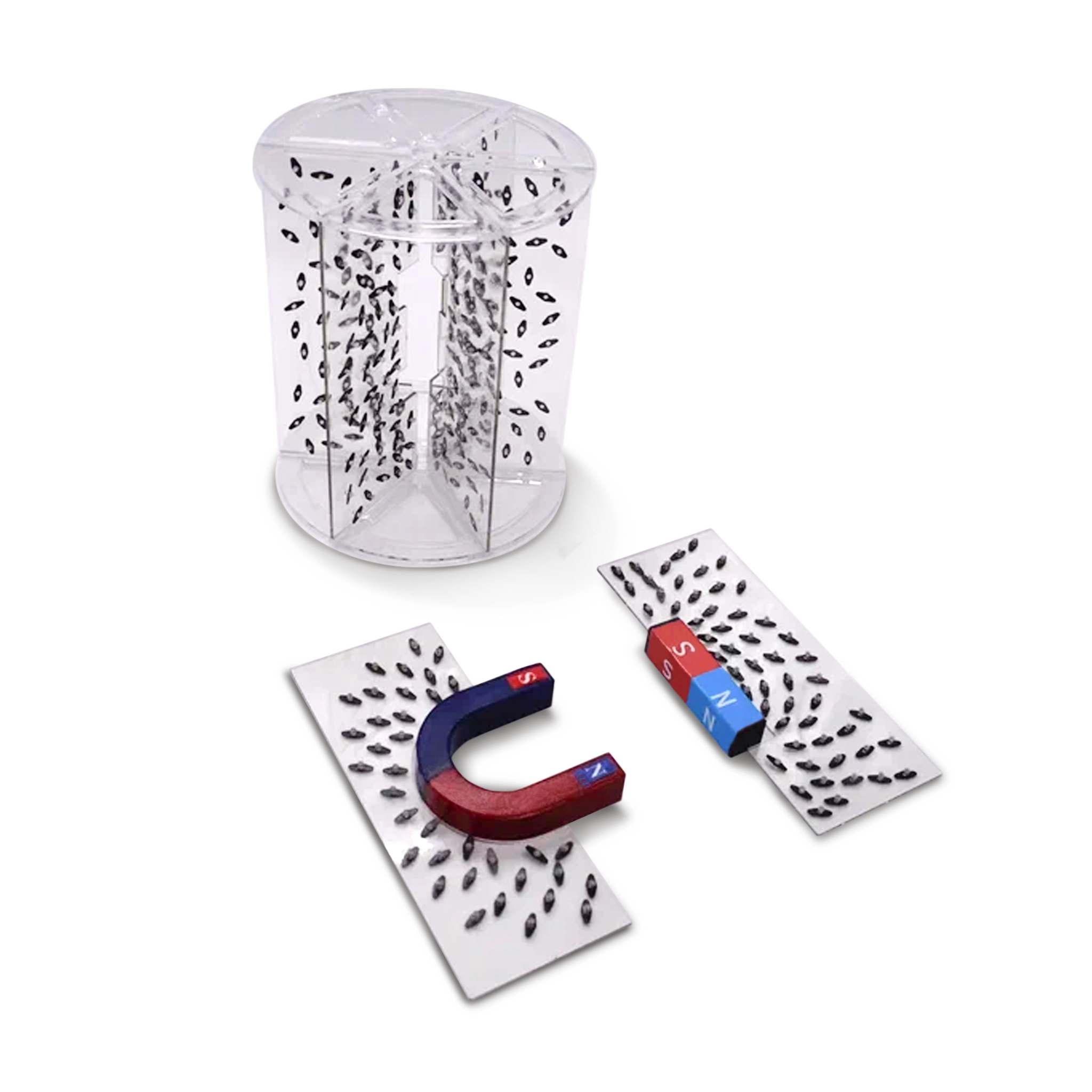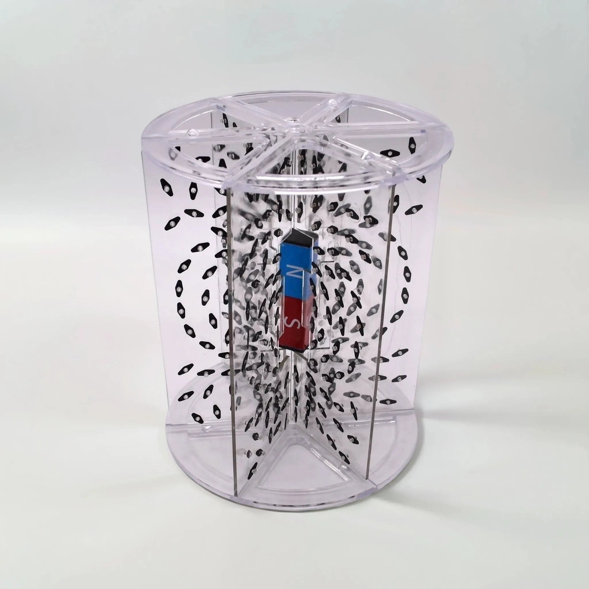 Специализированная модель для демонстрации в объеме линий магнитного поля: предназначена для изучения пространственной конфигурации силовых линий. В отличие от традиционных плоских планшетов, данная модель позволяет визуализировать структуру поля в трехмерном пространстве вокруг постоянных магнитов различной формы. Пособие является ключевым инструментом для формирования у учащихся четкого представления о векторе магнитной индукции и геометрии электромагнитных взаимодействий. Прибор позволяет наглядно продемонстрировать непрерывность магнитного поля и его сложную объемную структуру, что критически важно для понимания курса физики (раздел «Магнитные явления»).Технические характеристики