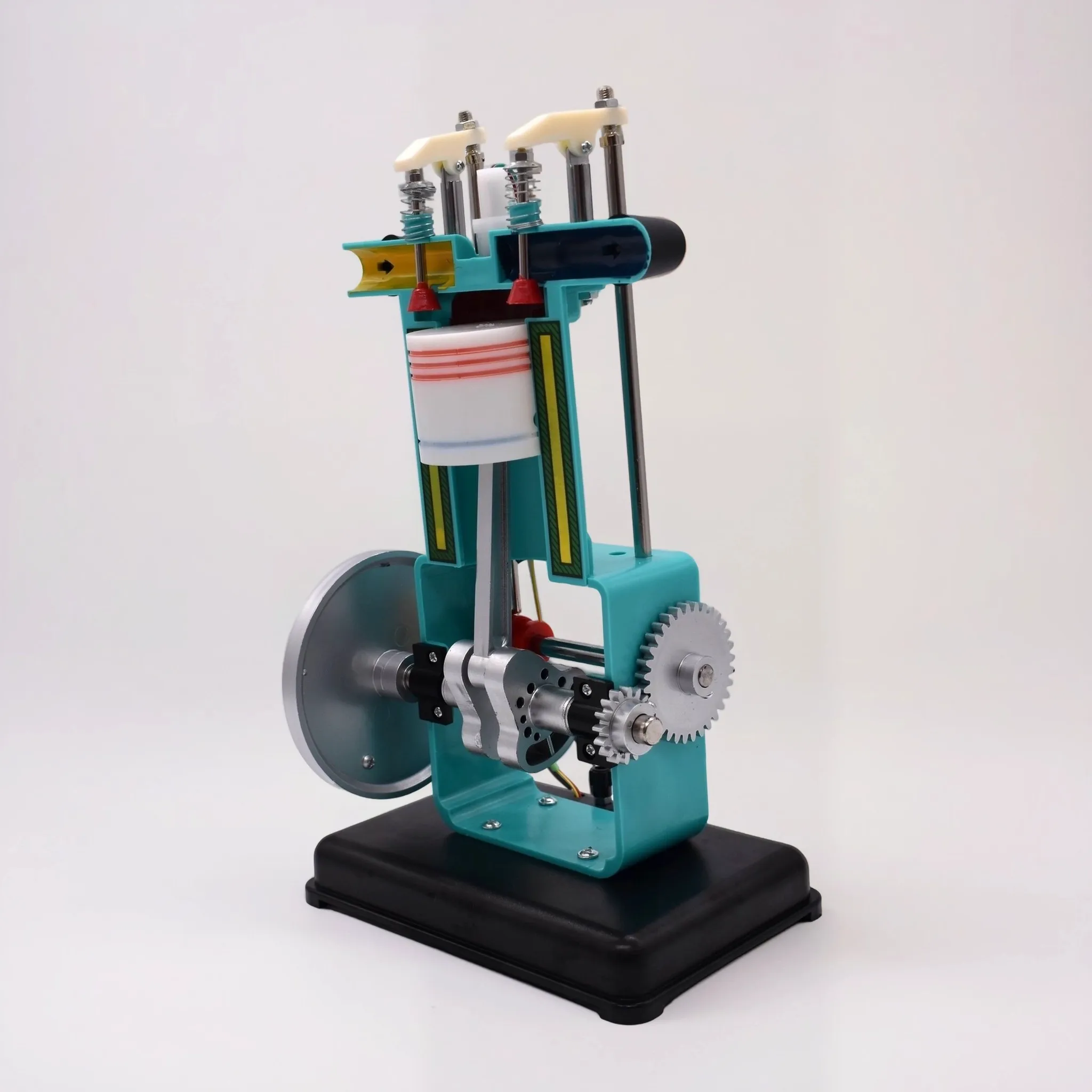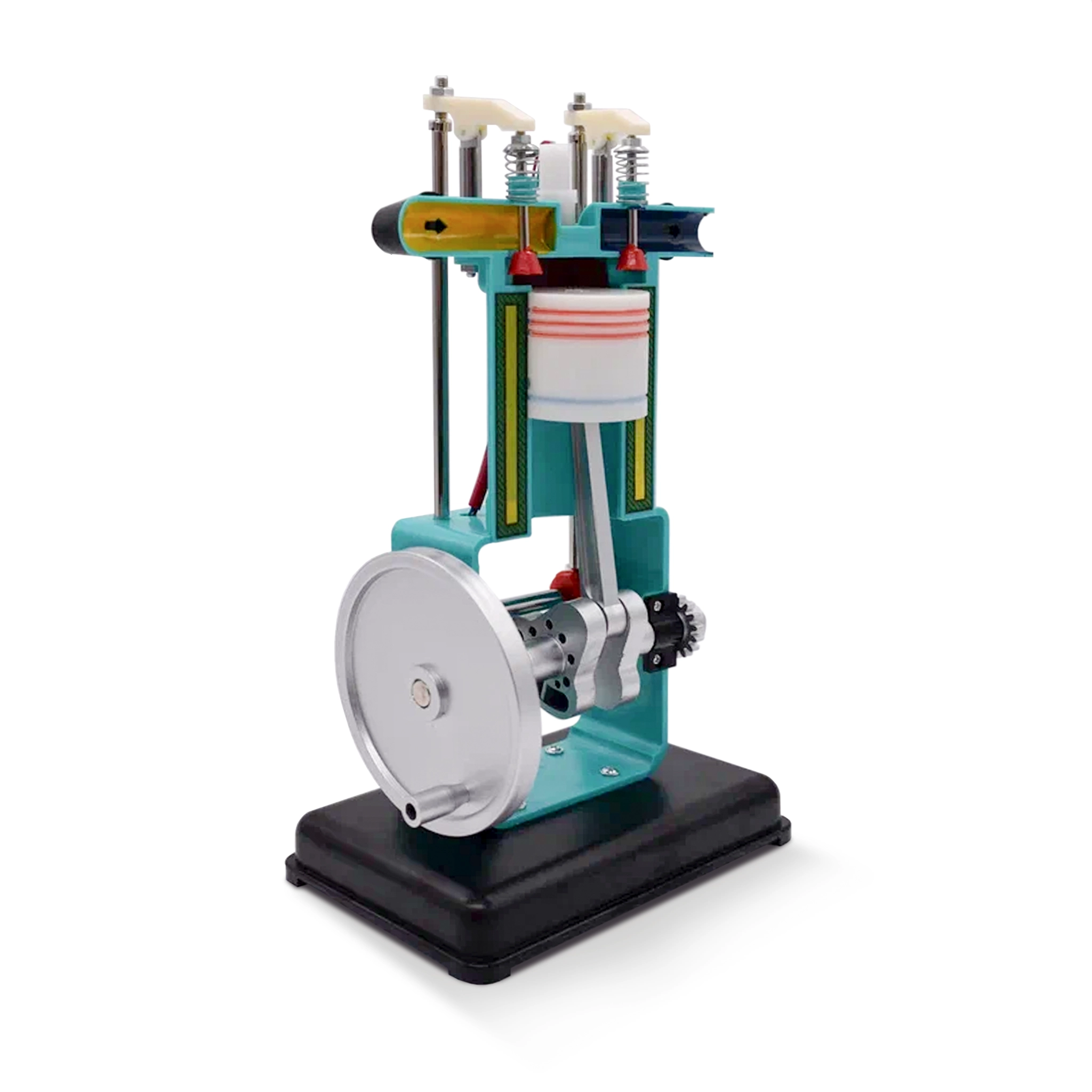 Модель двигателя внутреннего сгорания — это высокоэффективное наглядное пособие, предназначенное для изучения устройства и термодинамических циклов работы поршневых двигателей в кабинетах физики и технических лабораториях. Благодаря прозрачному исполнению ключевых узлов, модель превращает сложную теорию механики в понятный визуальный процесс, позволяя учащимся наблюдать за взаимодействием внутренних компонентов в динамике.Прибор идеально подходит для фронтальных демонстраций: от синхронизации клапанного механизма до преобразования возвратно-поступательного движения во вращательное. Интерактивность модели обеспечивается возможностью запуска механизмов, что критически важно для формирования у обучающихся четкого понимания работы системы газораспределения и кривошипно-шатунного механизма.