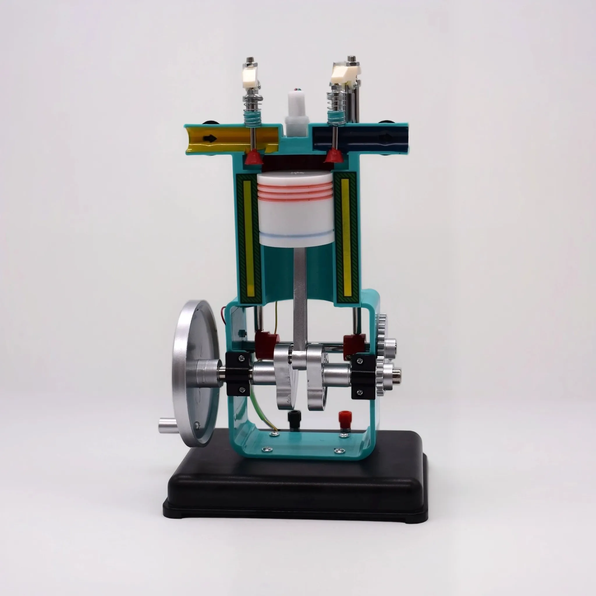 - Визуализация рабочего цикла: Прозрачный блок цилиндра позволяет детально рассмотреть перемещение поршня и имитацию тактов работы двигателя.