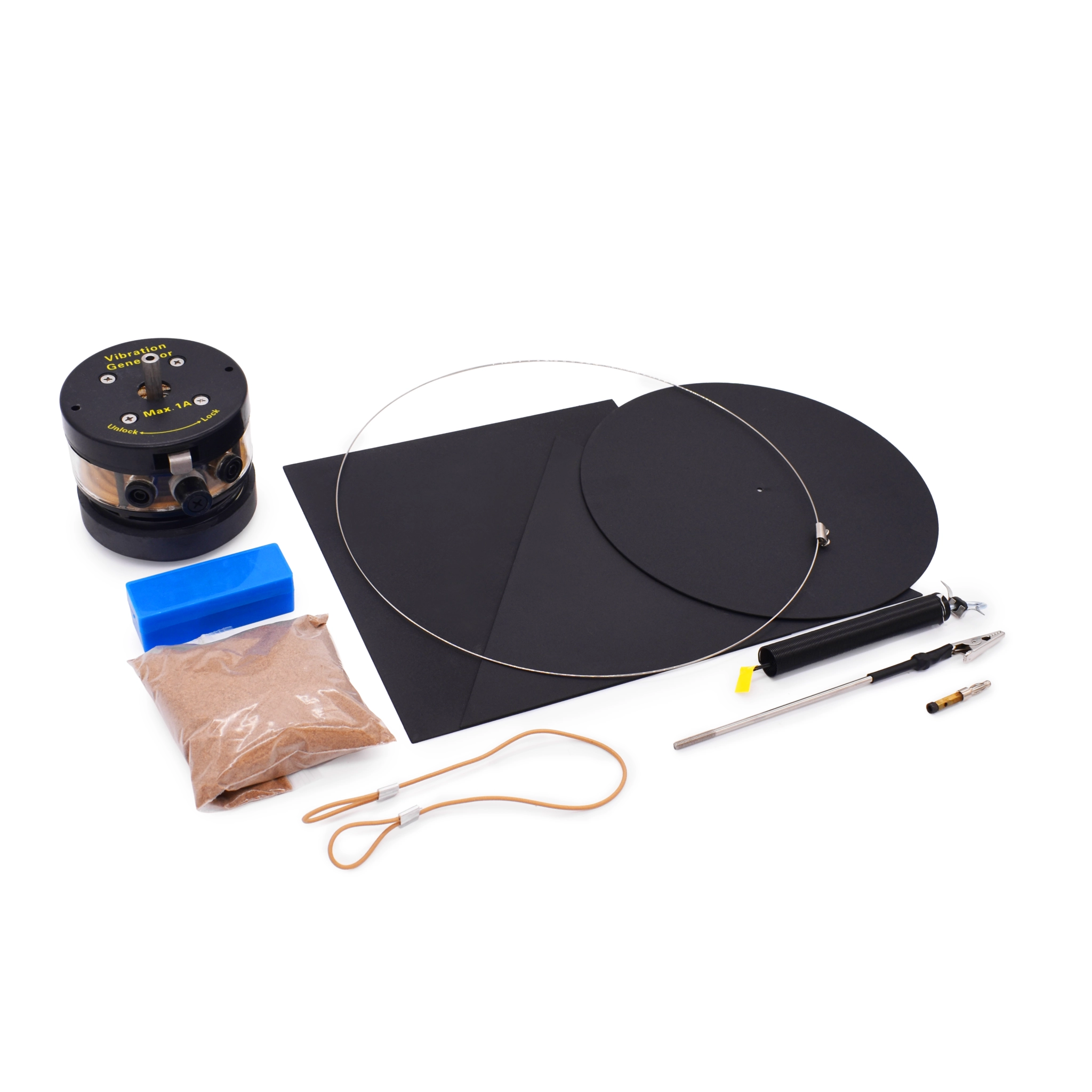 - Песок мелкой фракции (0,2 кг) — для визуализации фигур Хладни.