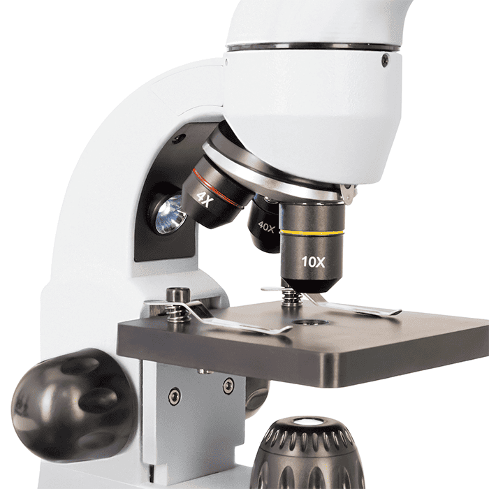 - Объективы: 4×, 10×, 40×s (подпружиненный)