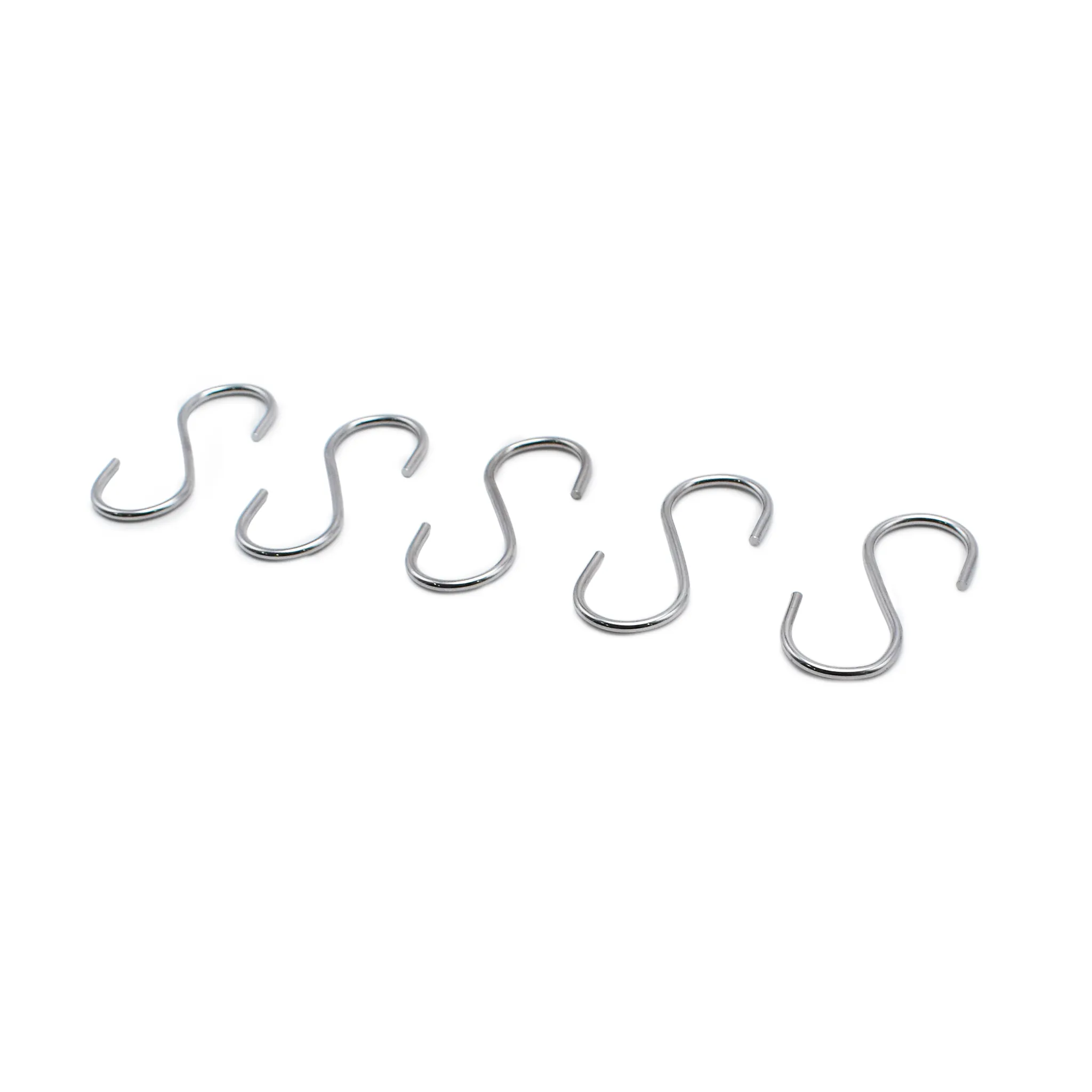 Двусторонний S образный металлический крючок предназначен для подвешивания предметов разной массы в бытовых условиях и в учебных целях (на уроках физики, химии, ОБЖ, технологии/труда). Не требует специальных инструментов, навешивается на перекладины, рейлинги, штанги.