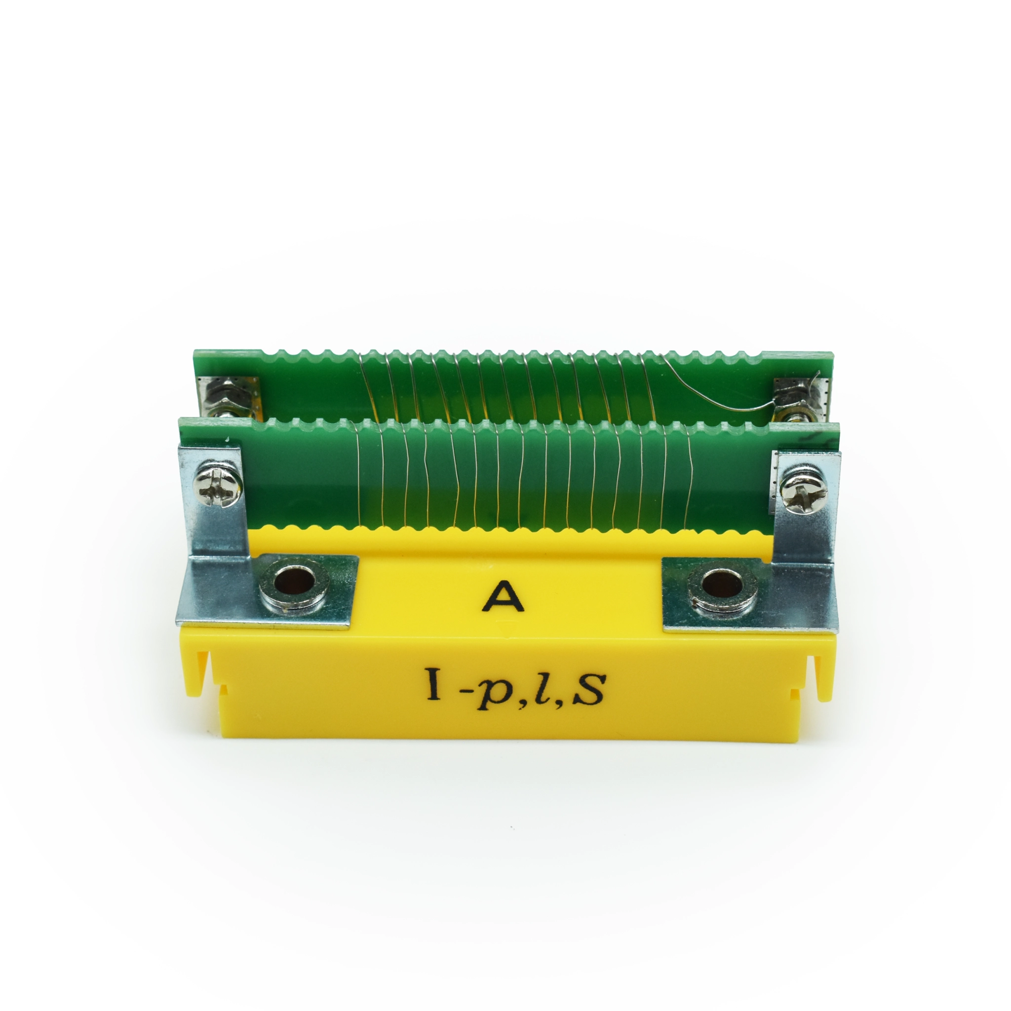 - Магнитная фиксация: Модуль закреплен на диэлектрической подставке, основание которой оснащено магнитами. Это позволяет надежно фиксировать резистор на металлических панелях лабораторных стендов или классных досках.