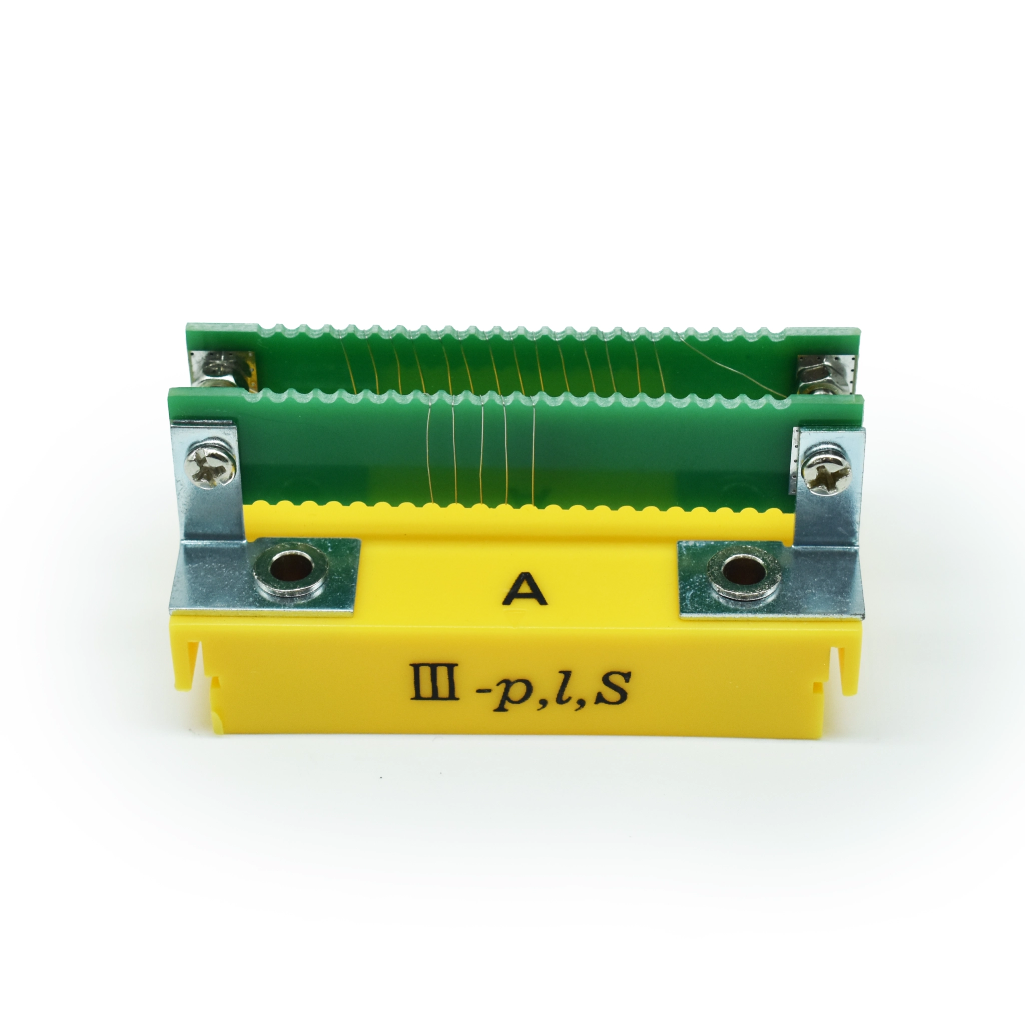 - Магнитная фиксация: Резистор закреплен на пластиковом основании ярко-желтого цвета, которое снабжено магнитами. Это позволяет надежно размещать компонент на металлических лабораторных стендах или классных досках для демонстрации схем.