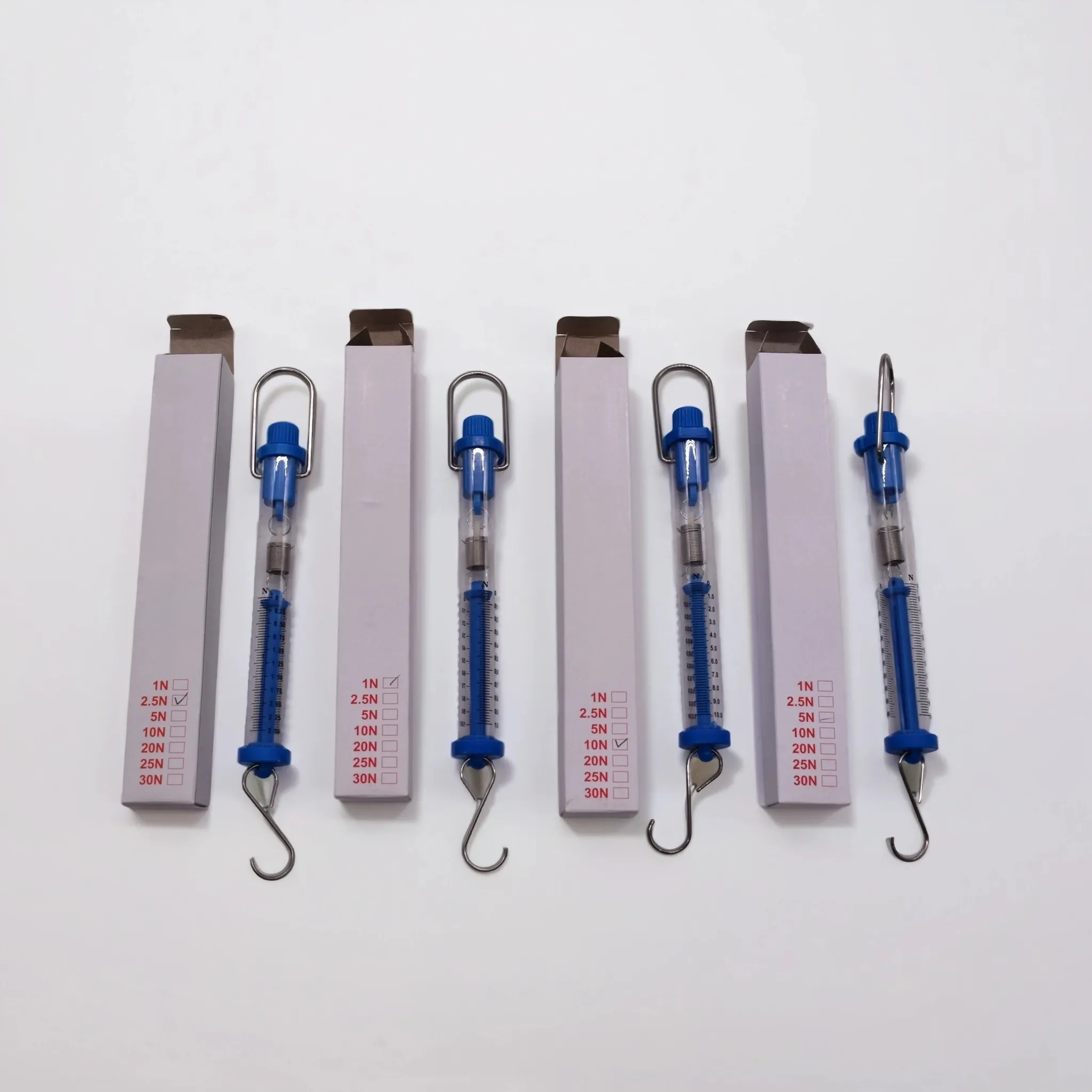 Набор состоит из четырех цилиндрических динамометров: