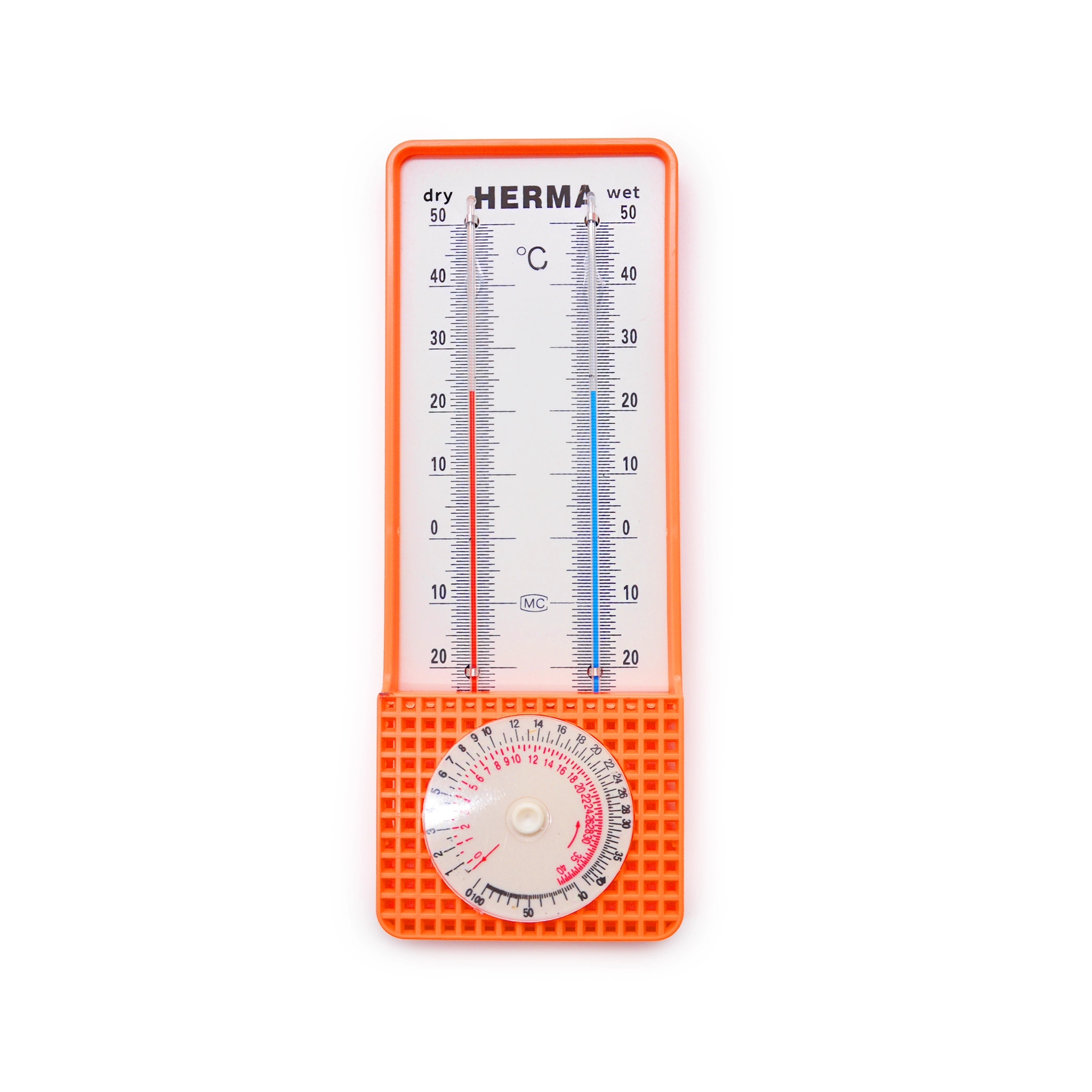 Психрометрический гигрометр — это высокоточный измерительный прибор, предназначенный для одновременного определения относительной влажности и температуры воздуха. Устройство является обязательным элементом оснащения кабинетов физики и химии, а также ключевым инструментом для соблюдения норм СанПиН в образовательных и медицинских учреждениях.Конструкция прибора основана на классическом методе разности показаний двух термометров, что гарантирует стабильность результатов без необходимости подключения к электросети. Оранжевый пластиковый корпус имеет специализированную решетчатую структуру, которая обеспечивает свободную конвекцию воздуха для максимально быстрого и точного отклика датчиков.