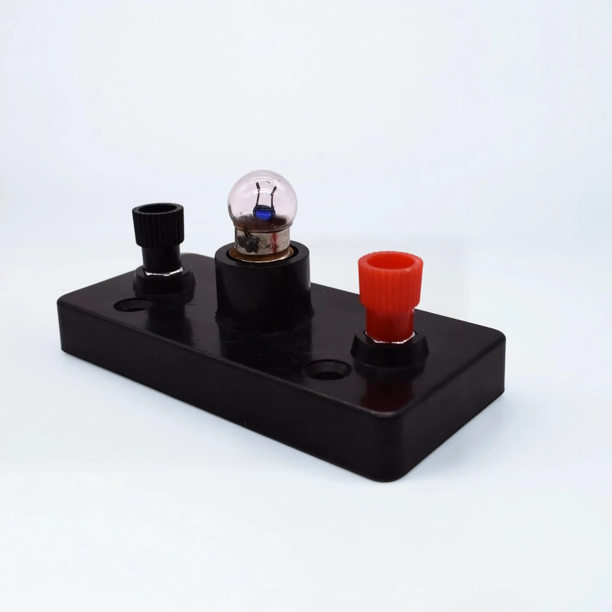 Учебный патрон с лампой — это базовый элемент материально-технического оснащения кабинетов физики, предназначенный для сборки электрических цепей и проведения демонстрационных опытов по электродинамике. Прибор позволяет наглядно изучать законы постоянного тока, принципы работы осветительных приборов и зависимость сопротивления проводников от температуры.Конструкция устройства максимально адаптирована для учебного процесса: прочная пластиковая платформа обеспечивает устойчивость на рабочем столе, а винтовые клеммы позволяют быстро и надежно подключать соединительные провода без использования пайки. Малое рабочее напряжение делает эксплуатацию прибора полностью безопасной для учащихся.