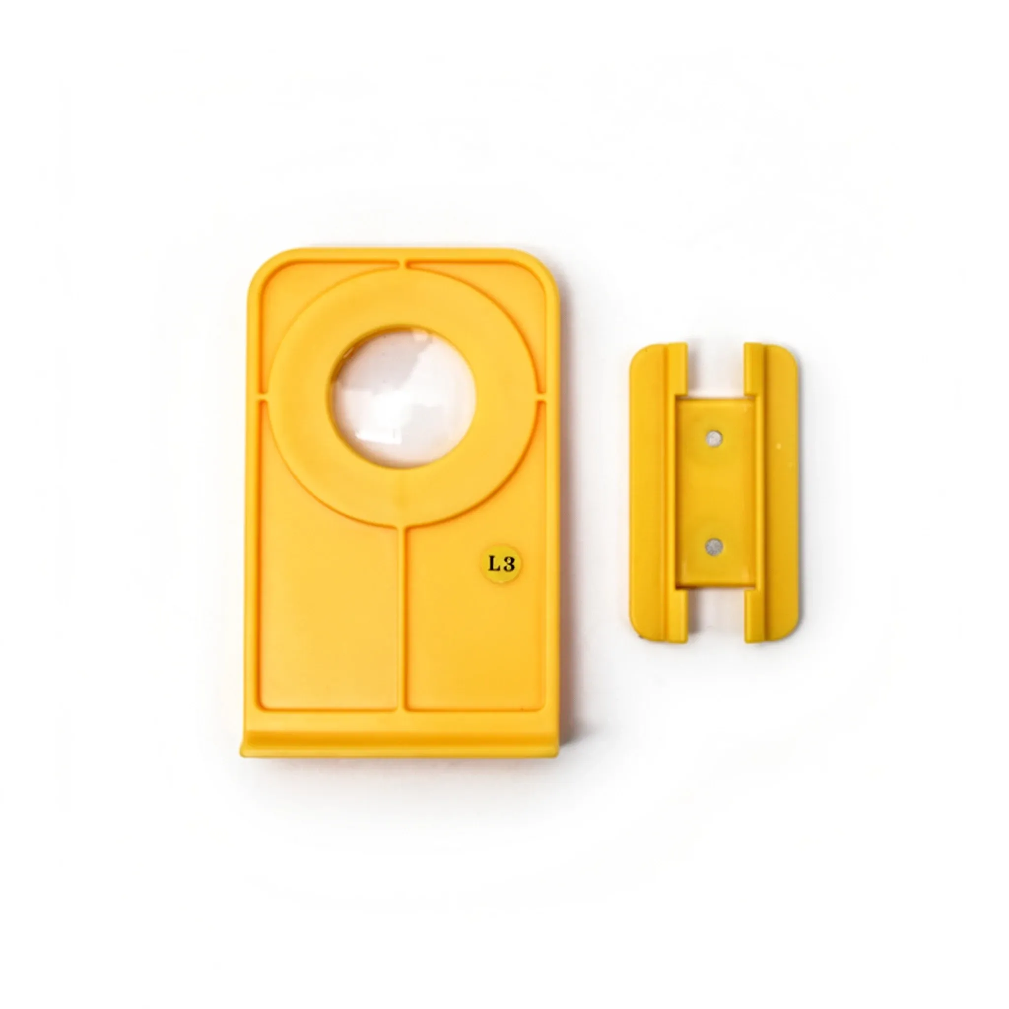 - Высокая контрастность: яркий цвет корпуса облегчает визуальный контроль положения линзы в условиях затененного кабинета, необходимых для четкого наблюдения световых лучей.