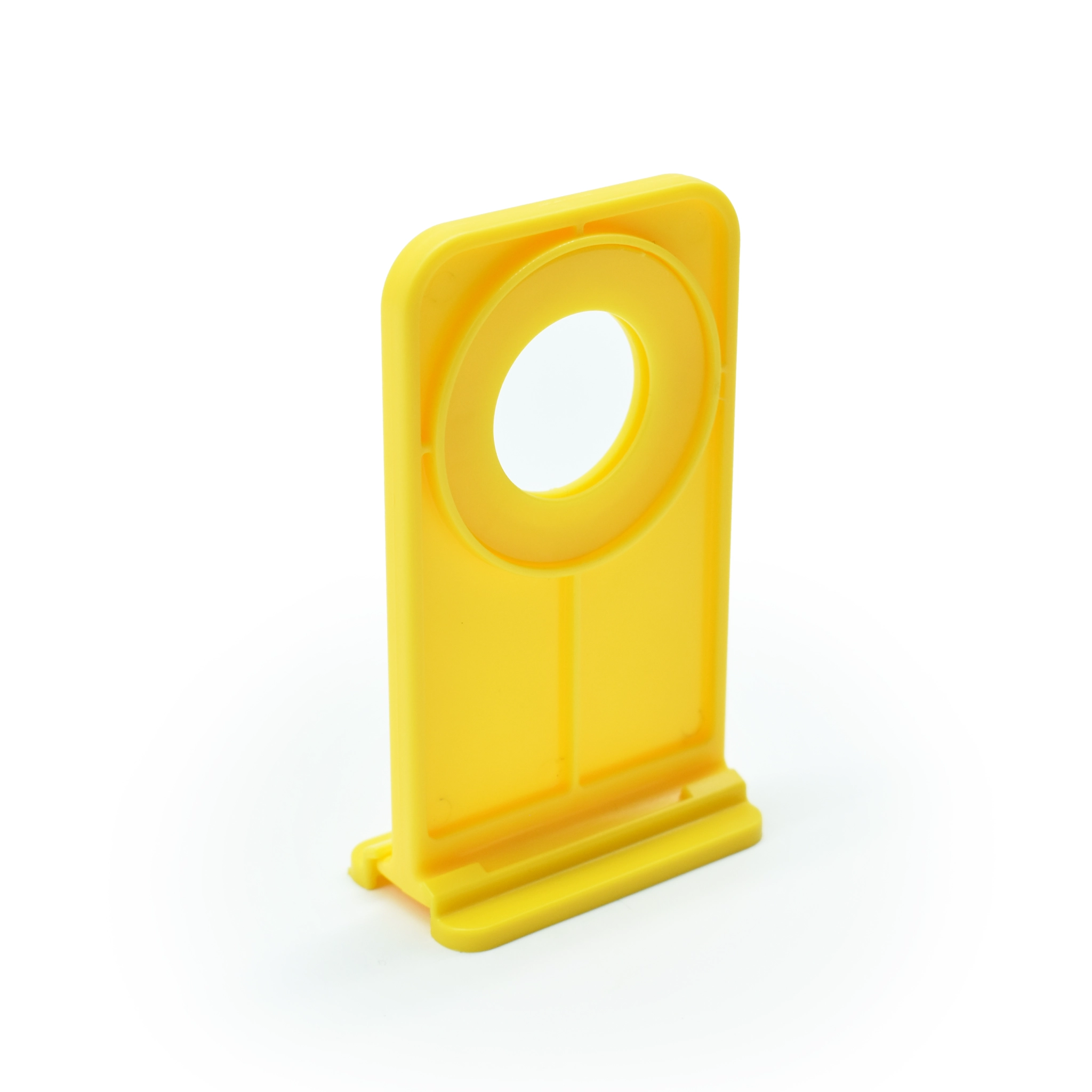 Рейтер выполнен из прочного пластика ярко жёлтого цвета, имеет прямоугольную форму с закруглёнными углами.