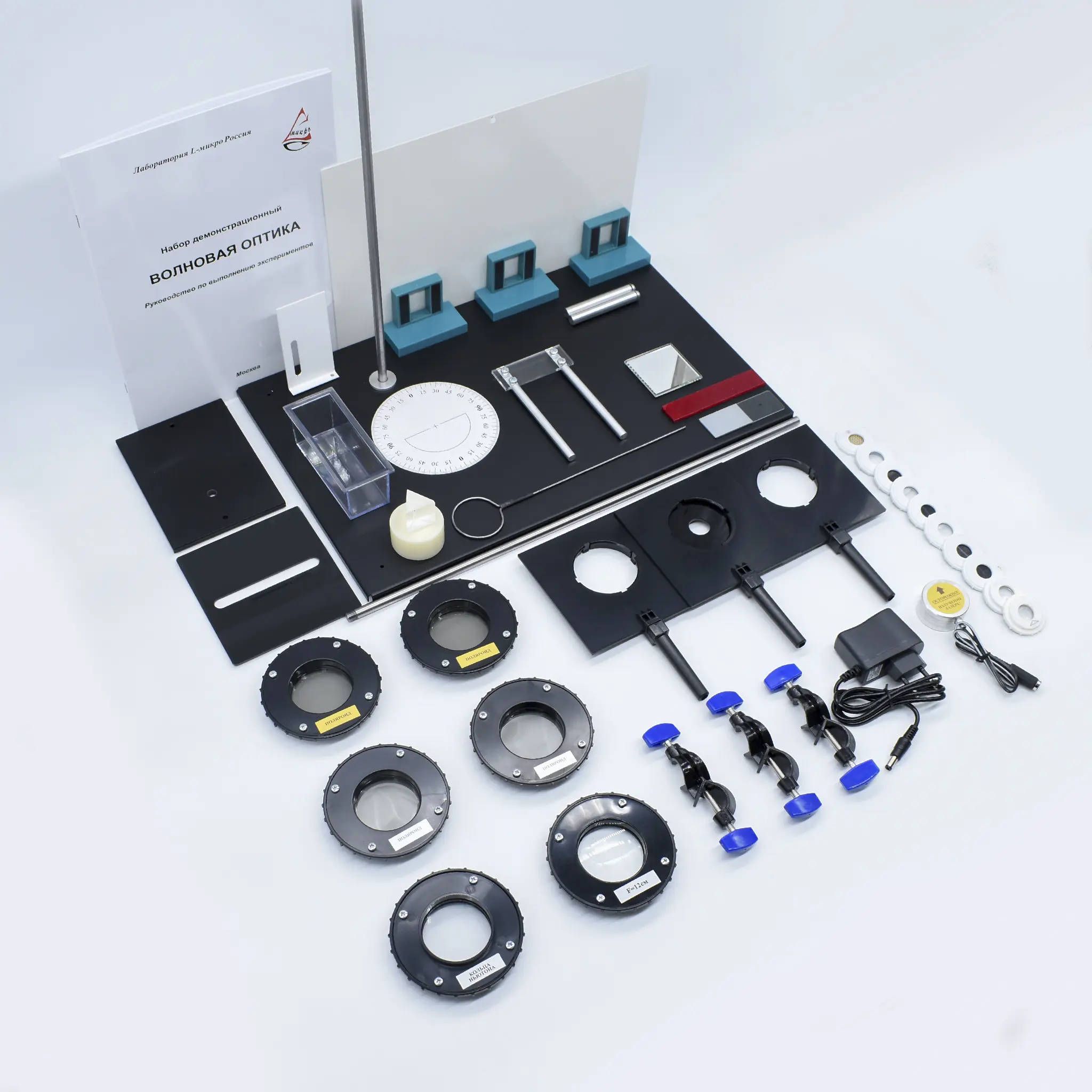 Набор «Волновая оптика» — это комплексное учебно-методическое решение, предназначенное для наглядной демонстрации фундаментальных явлений физической оптики. Оборудование позволяет организовать полноценный лекционный цикл и лабораторный практикум, охватывающий такие ключевые разделы, как дисперсия, интерференция, дифракция и поляризация световых волн.Комплект базируется на использовании полупроводникового лазера и набора прецизионных оптических элементов, что обеспечивает высокую контрастность и четкость наблюдаемых картин даже в частично освещенных аудиториях. Набор позволяет провести 23 уникальных демонстрации, включая классические опыты Юнга, наблюдение колец Ньютона и исследование напряжений в материалах методом фотоупругости.