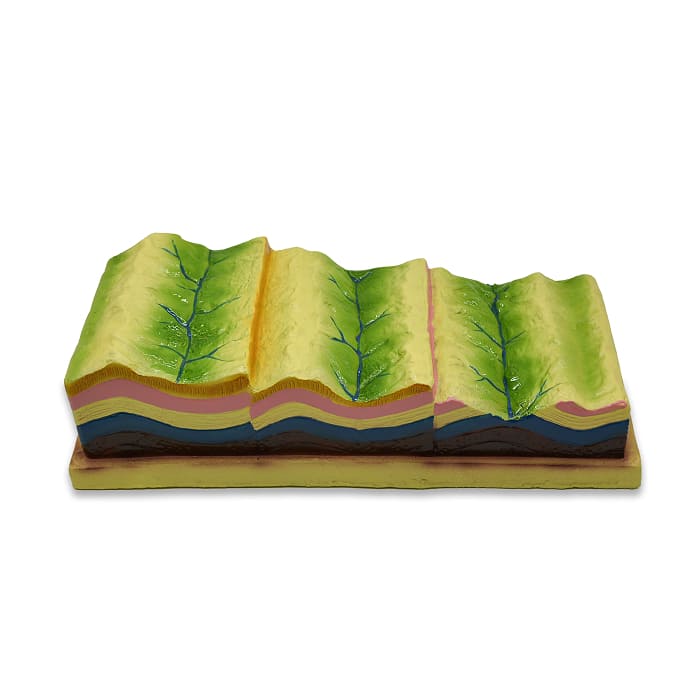 Предназначена для использования в качестве демонстрационного материала в курсе географии, на уроке по теме “Формы и типы рельефа”. Модель изображает строение земных складок и эволюций рельефа. На модели показаны: горные хребты, вершины, глубокие межгорные долины и разрез складчатого строения. Модель изготовлена из пластмассы, раскрашена в естественные цвета.