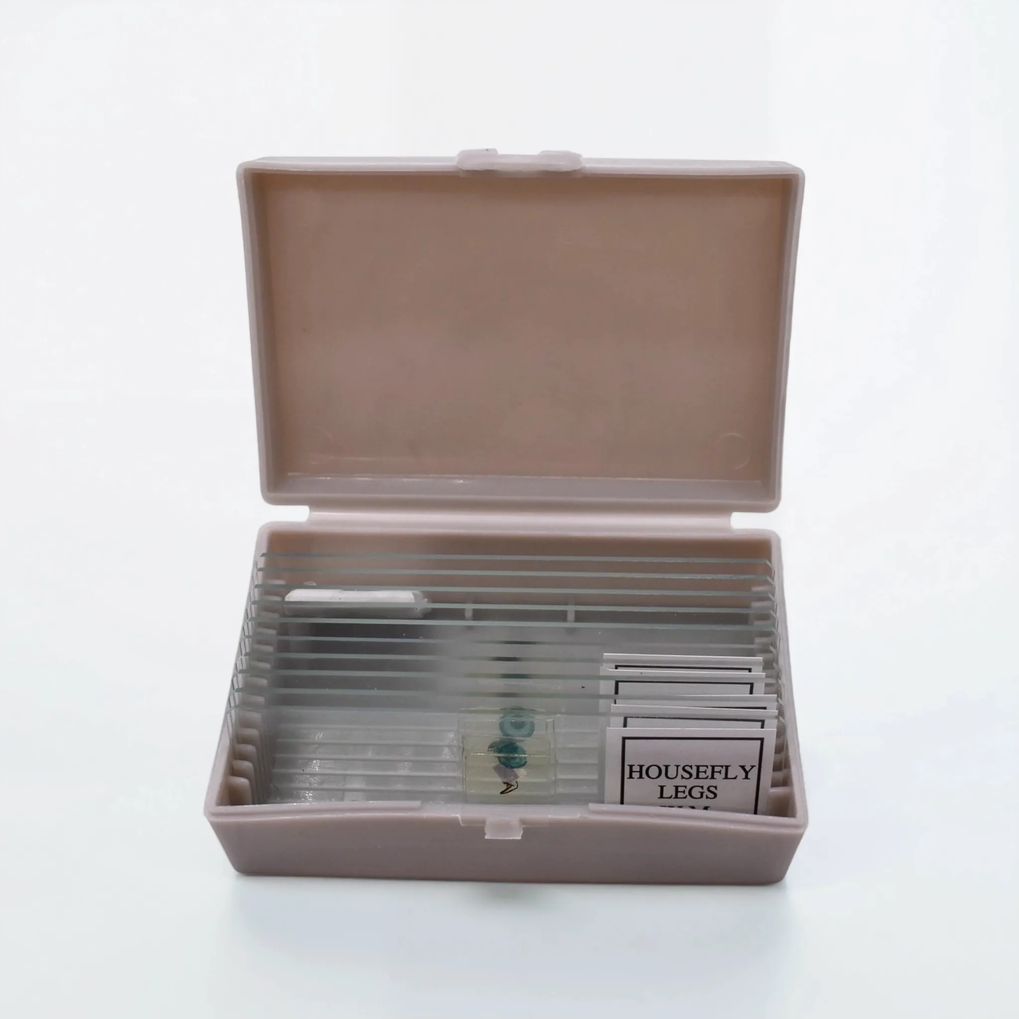 Пластмассовая коробка с 5 предметными и 10 покровными стеклами и 5 подготовленными образцами - 1
