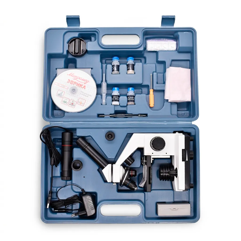- Автономность и мобильность: Микроскоп может работать как от сети, так и от батареек, а жесткий кейс позволяет безопасно транспортировать оборудование для выездных исследований.