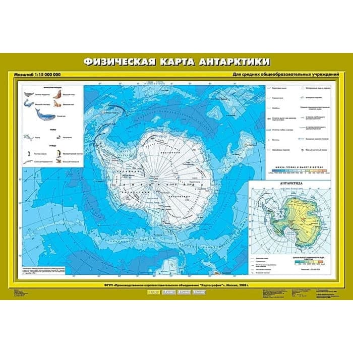 на карте условными знаками изображена территория Антарктики и Южный океан, ее омывающий.