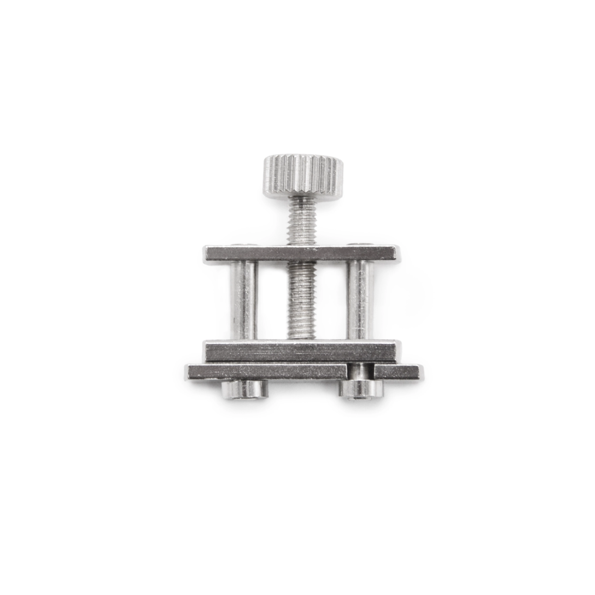Изготовлен из нержавеющей стали, что обеспечивает долговечность и устойчивость к коррозии. Габаритные размеры зажима — примерно 23×10×15 мм, зазор для трубок — 8 мм, максимальный просвет — 10 мм.