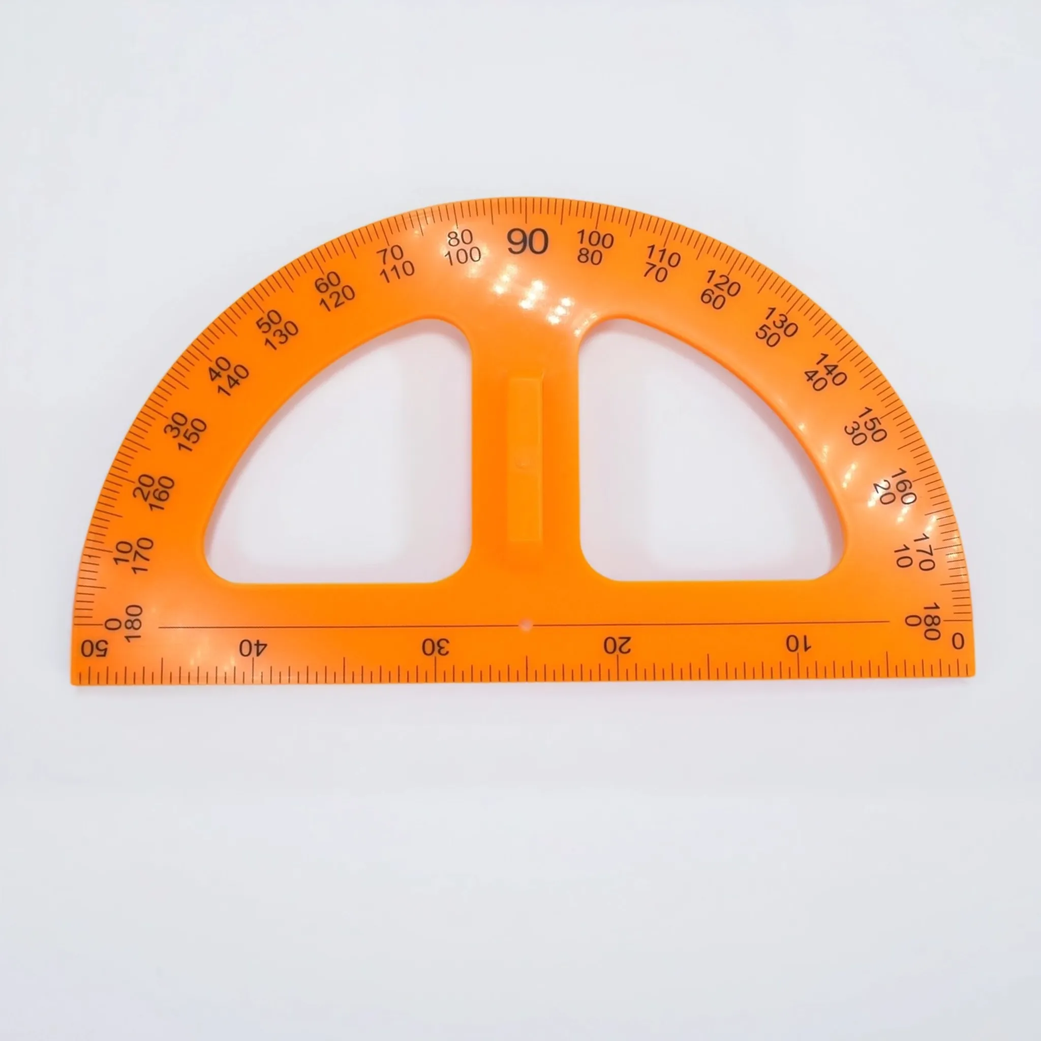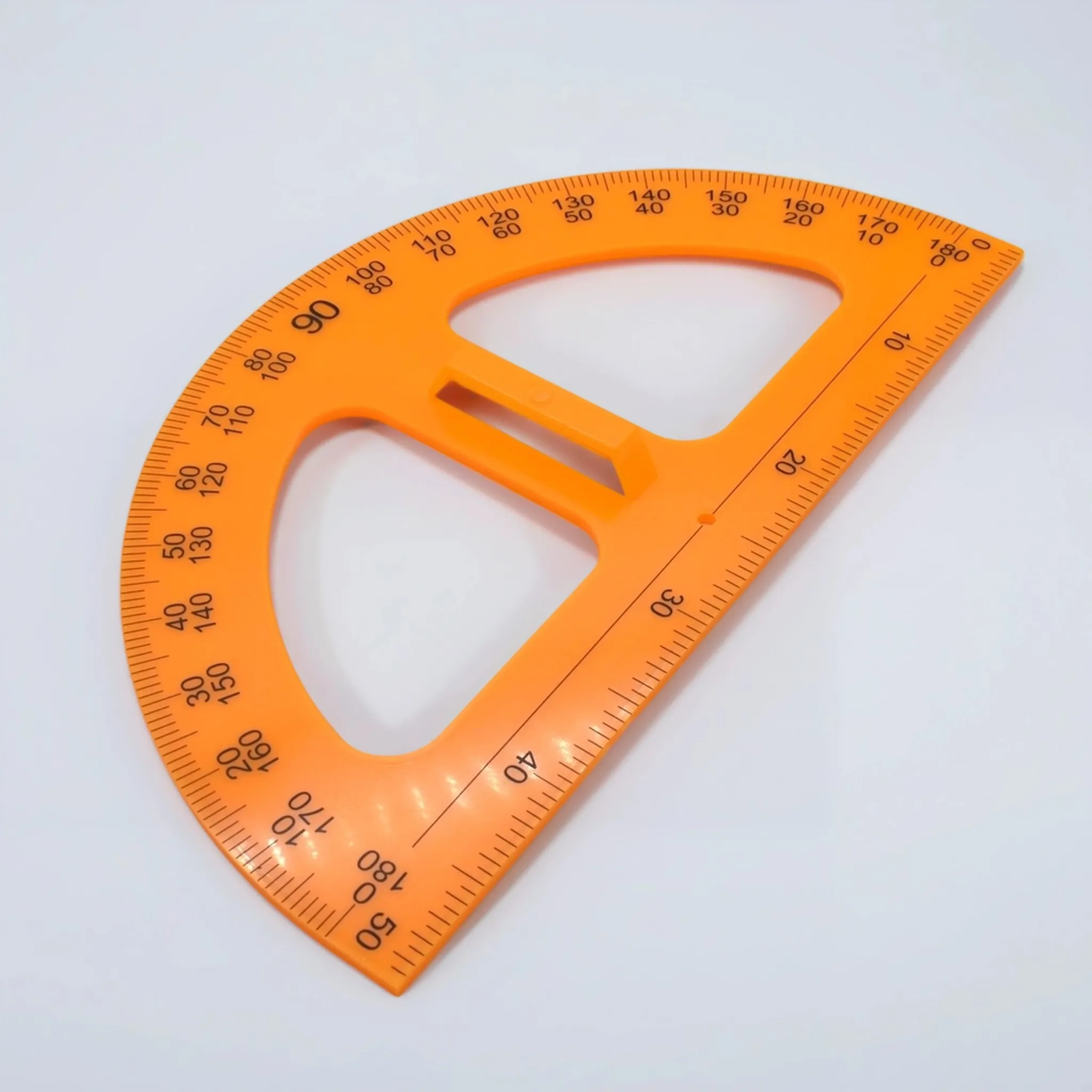 - Транспортир (0–180°): Оснащен прямой и обратной шкалами для измерения и построения углов в любом направлении.