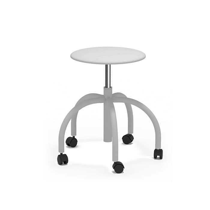 Описание. Табурет, регулируемый по высоте на круглой трубе с колесиками.