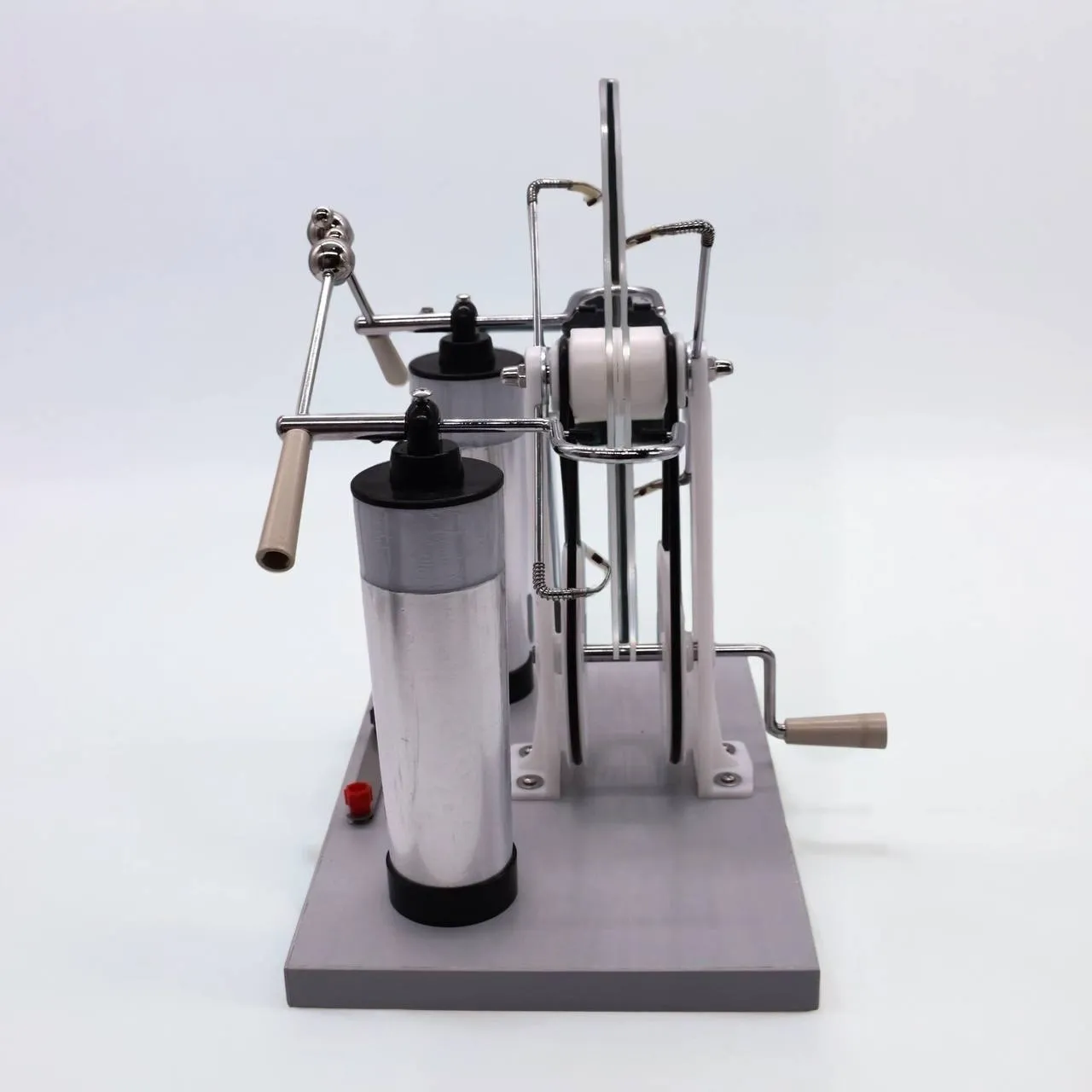 Электрофорная машина — это классический электростатический генератор, предназначенный для получения высокого постоянного напряжения и проведения демонстрационных опытов по курсу физики. Прибор является незаменимым инструментом для визуализации абстрактных понятий электродинамики, позволяя генерировать мощные искровые разряды и накапливать значительный электрический заряд.Работа машины основана на принципе электростатической индукции. Благодаря встречному вращению дисков с проводящими секторами, на полюсах прибора создается разность потенциалов, достигающая десятков тысяч вольт. Прозрачное исполнение дисков позволяет учащимся детально наблюдать за механикой процесса, превращая сложную теорию в эффектное научное шоу.