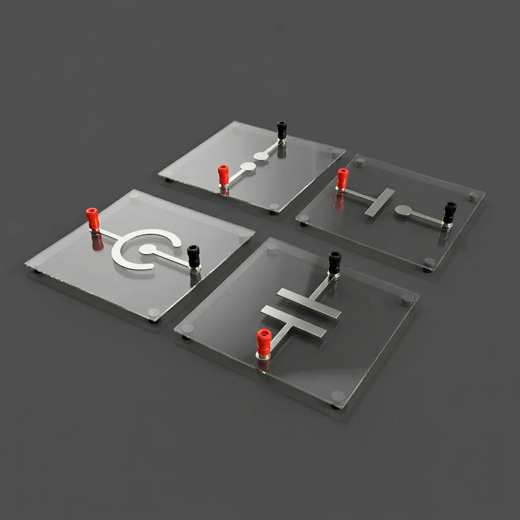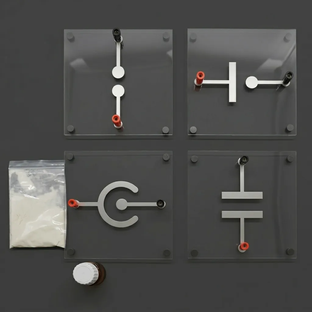 - Совместимость: Пластины с электродами адаптированы для работы со стандартными школьными источниками высокого напряжения (электрофорная машина, преобразователь).