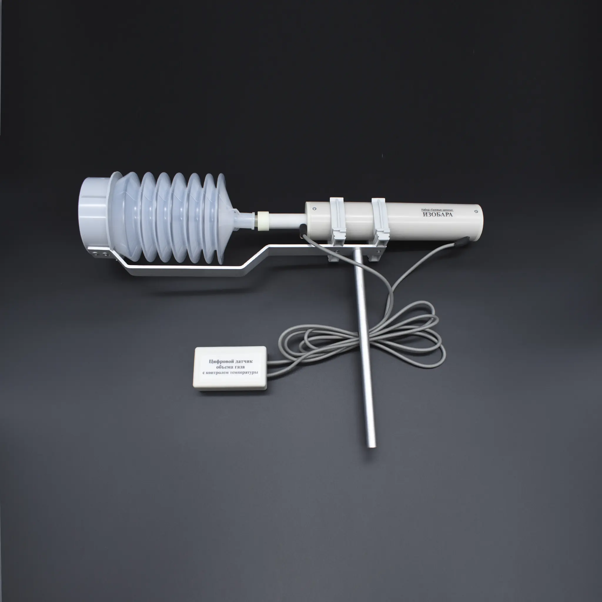 - Специализированные модули: Набор включает три готовые установки («Изотерма», «Изохора», «Изобара»), каждая из которых оснащена встроенными датчиками для изучения конкретного газового закона.