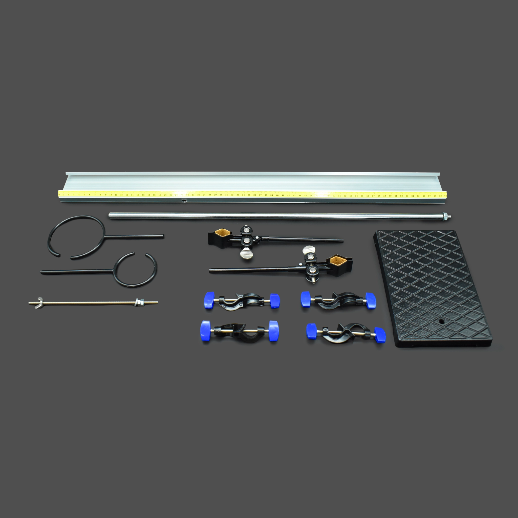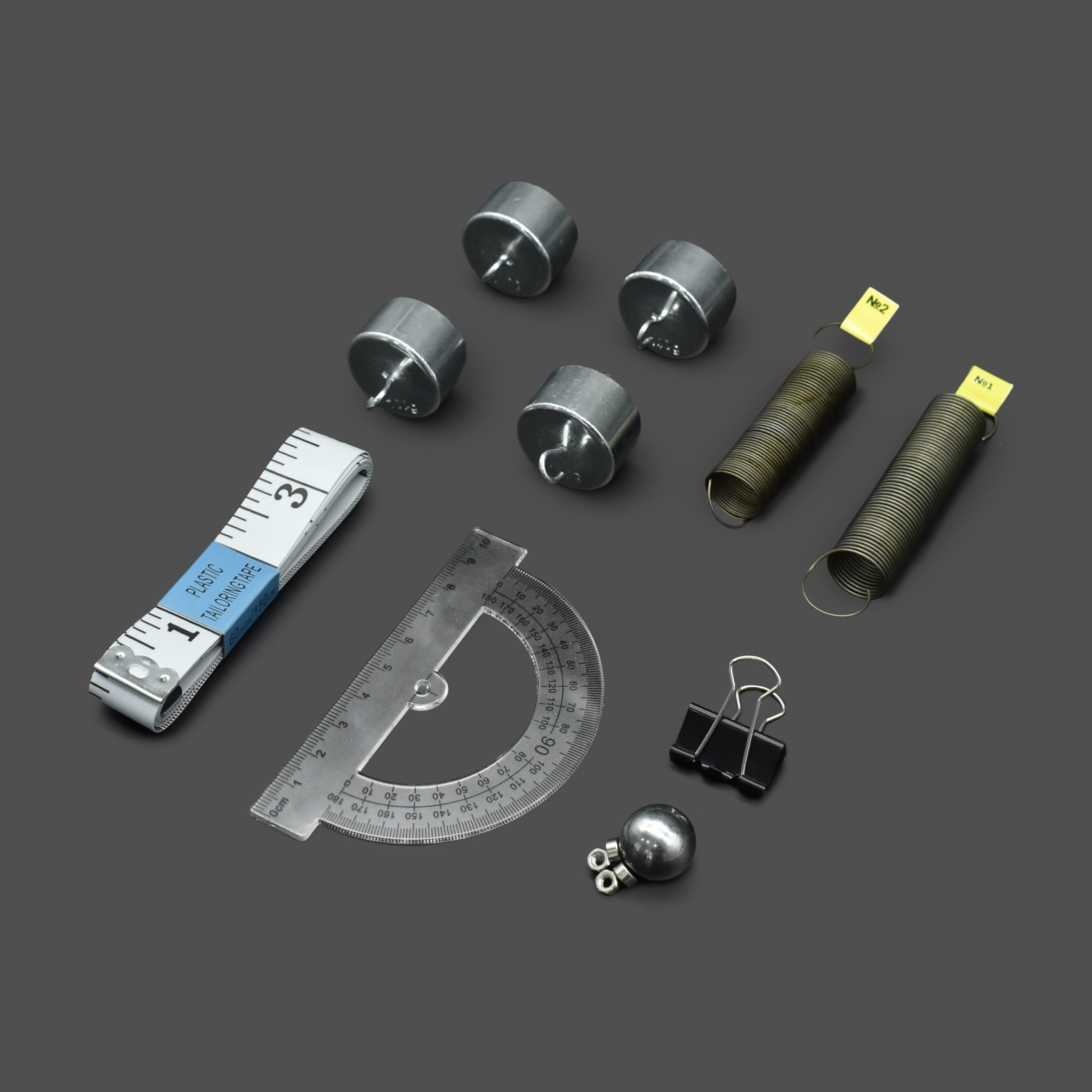 Комплект предназначен для выполнения экспериментальных заданий ОГЭ по физике в соответствии со Спецификацией контрольных измерительных материалов, утверждённой ФГБНУ «ФИПИ». С его помощью можно измерять среднюю скорость и ускорение движения бруска по наклонной плоскости, частоту и период колебаний математического и пружинного маятника (с использованием электронного секундомера), а также исследовать зависимости: ускорения бруска от угла наклона направляющей, периода (частоты) колебаний нитяного маятника от длины нити, периода колебаний пружинного маятника от массы груза и жёсткости пружины — и подтверждать независимость периода колебаний нитяного маятника от массы груза.
