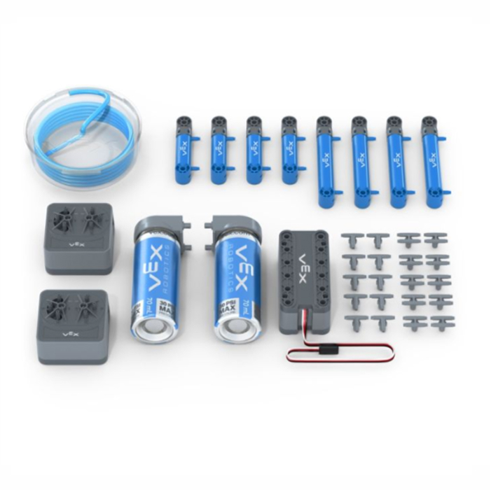 Содержит всё необходимое для работы с пневматикой на уроках или в условиях соревнований по робототехнике VEX. Пневматика обеспечивает быстрое и мощное линейное движение, которое полезно в самых разных инженерных системах. Пневматическую систему можно использовать для управления захватом робота или любого другого механизма, требующего быстрого движения. В частности, пневматика полезна в конструкциях, имеющих только два состояния (открыто/закрыто, вверх/вниз и т. д.).