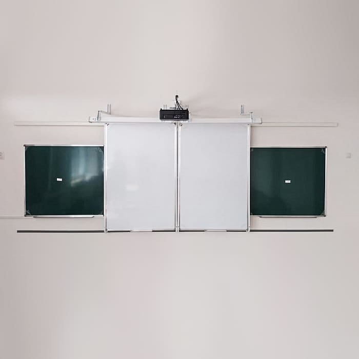 Система совместима с интерактивными досками и ЖК‑панелями диагональю 75–94″ и толщиной до 200 мм (включая варианты с настенным креплением). Уникальное сочетание маркерных (подвижных) и меловых (стационарных) досок обеспечивает гибкость образовательного процесса.